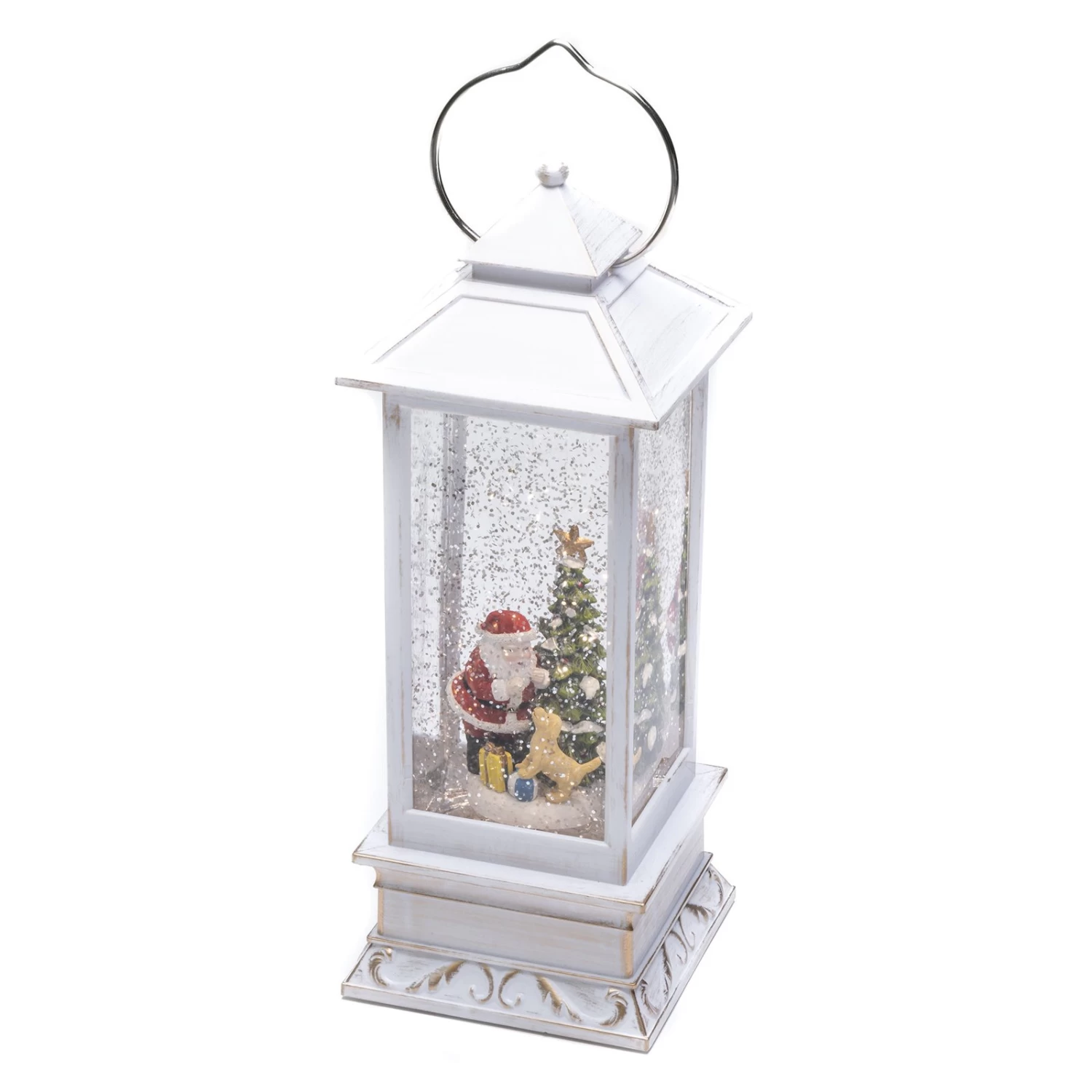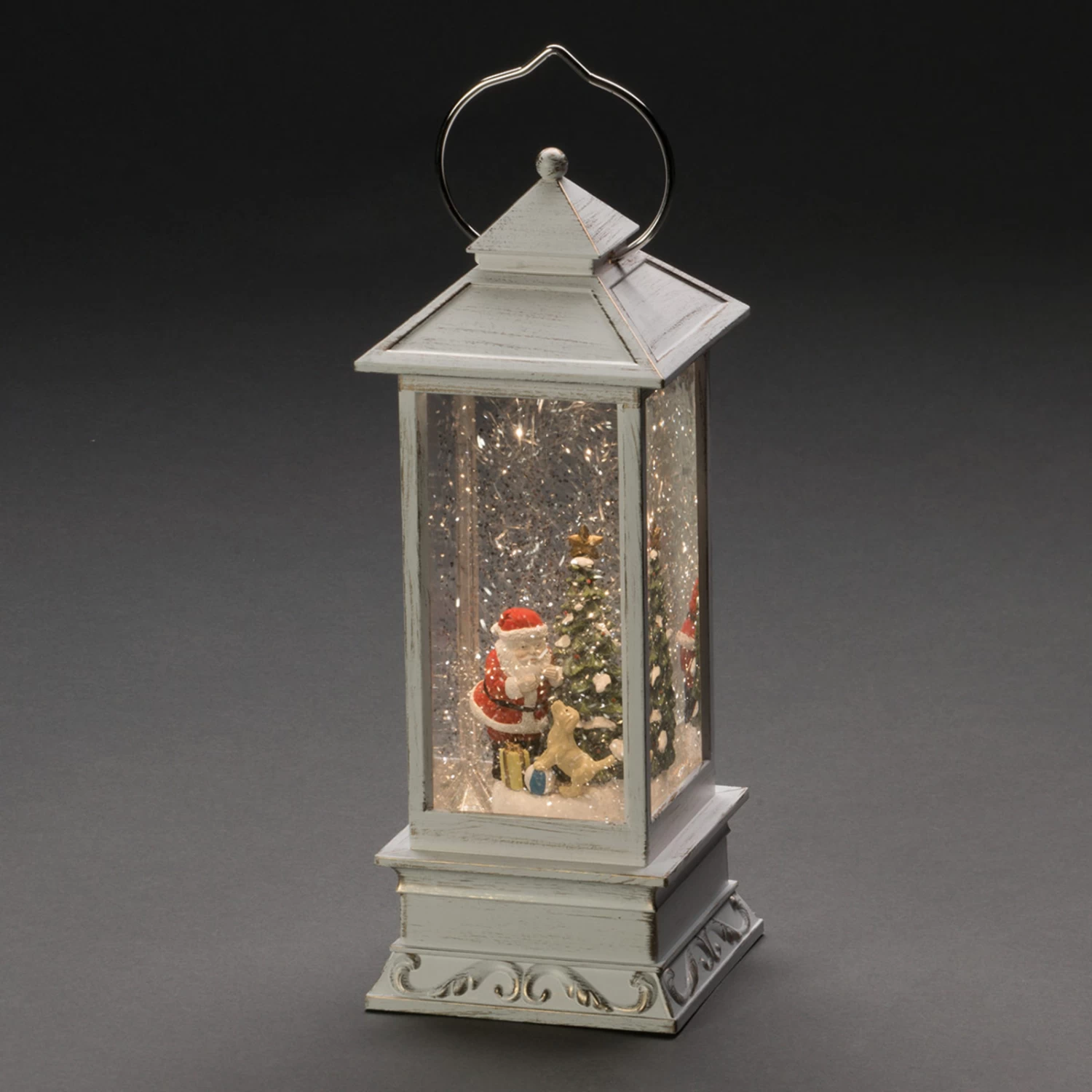 Ästhetisch gestaltete LED-Wasserlaterne Weihnachtsmann mit Hund