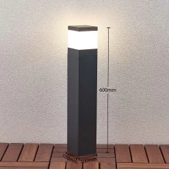 Litas passt zu vielen Außenumgebungen in einem modernen Stil, denn die Wegeleuchte ist ganz geradlinig in eckiger Form gestaltet und präsentiert sich absolut detailreduziert, so dass dem Wesentlichen, der Lichtabgabe, der Vortritt gewährt wird. Das Gehäuse aus Aluminiumdruckguss hat ein anthrazitfarbenes Finish, das sich gut mit vielen anderen Farben kombinieren lässt. Im oberen Teil befindet sich ein weißer Einsatz aus Polycarbonat, der angenehmen Lichtschein im Außenbereich erzeugt, der ganz ohne Blendungen auskommt. Dank der LED-Technik handelt es sich bei der Wegelampe Litas um einen sehr energieeffizienten Lichtspender.