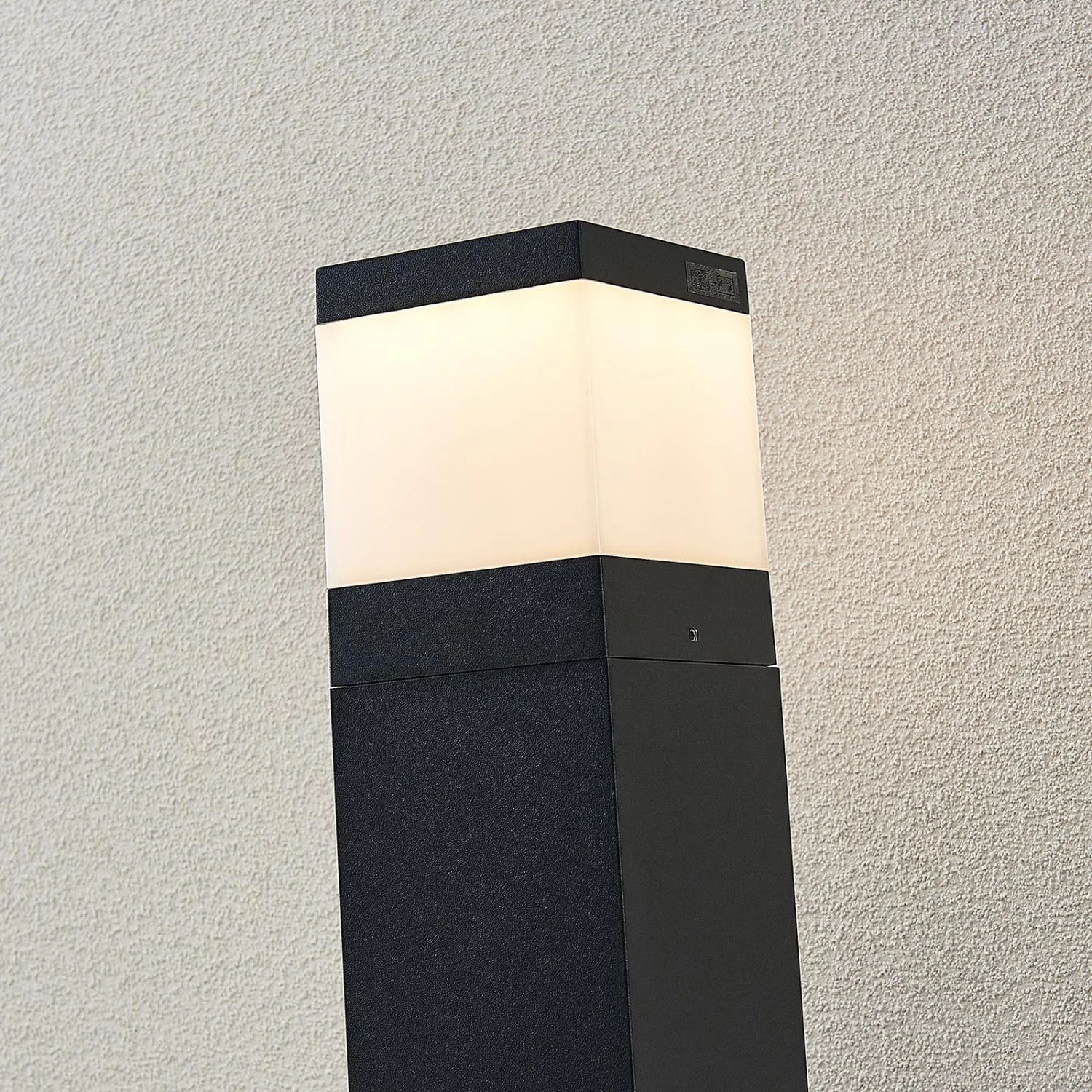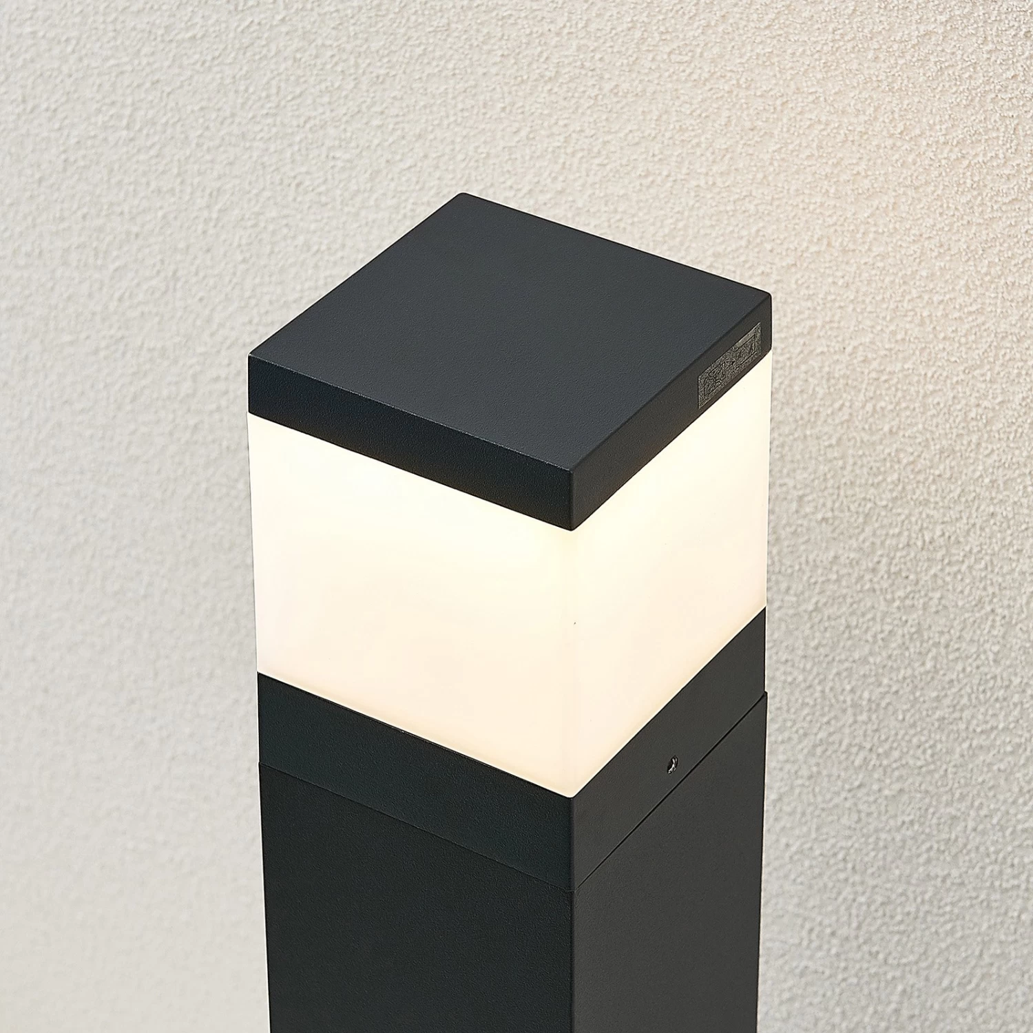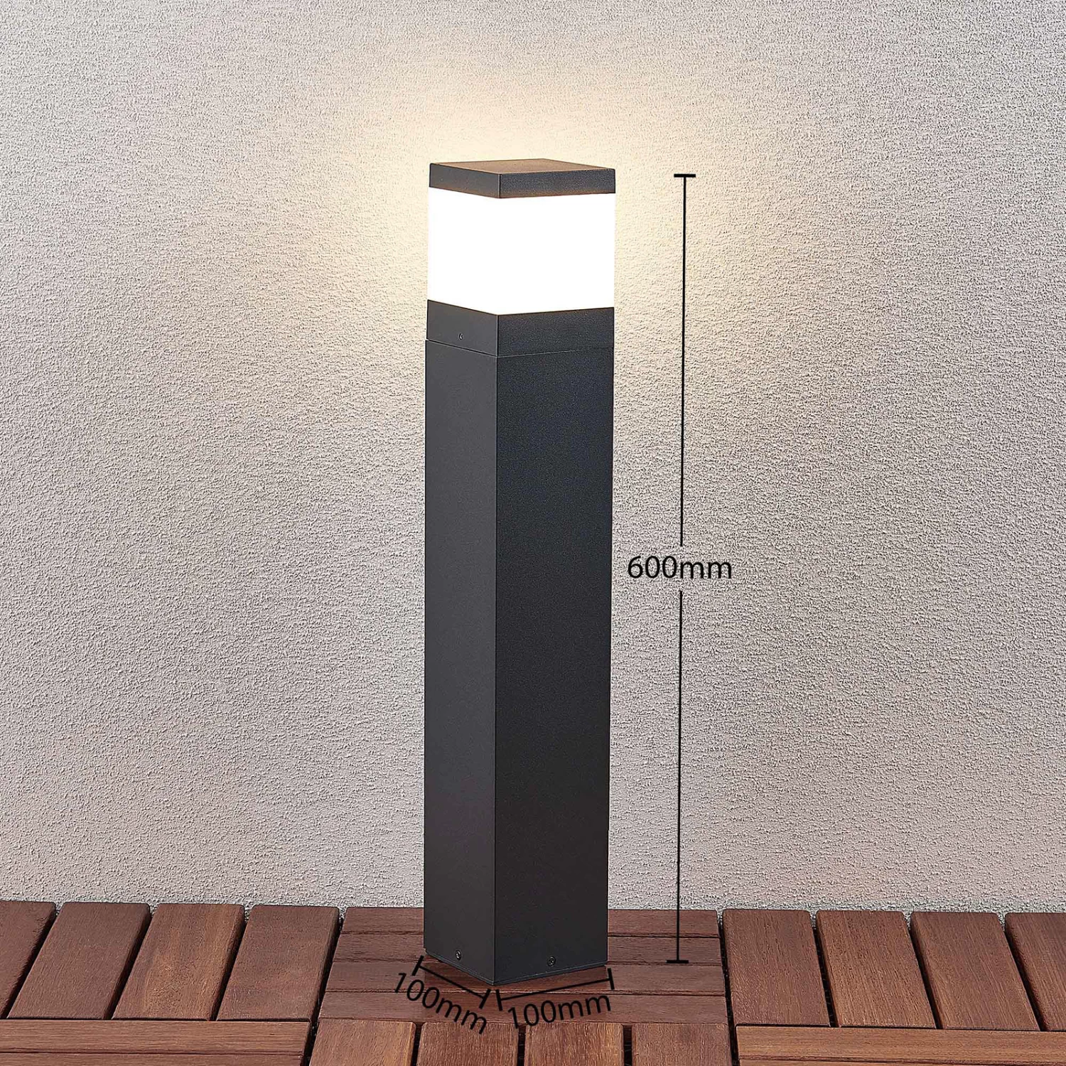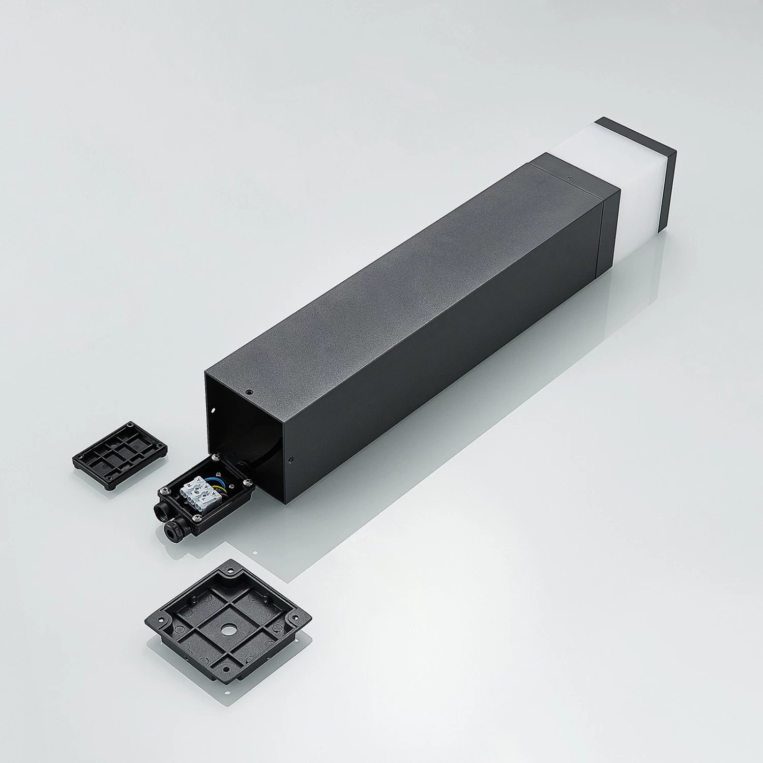Anthrazitfarbene LED-Wegelampe Litas mit eckigem Leuchtengehäuse aus Aludruckguss