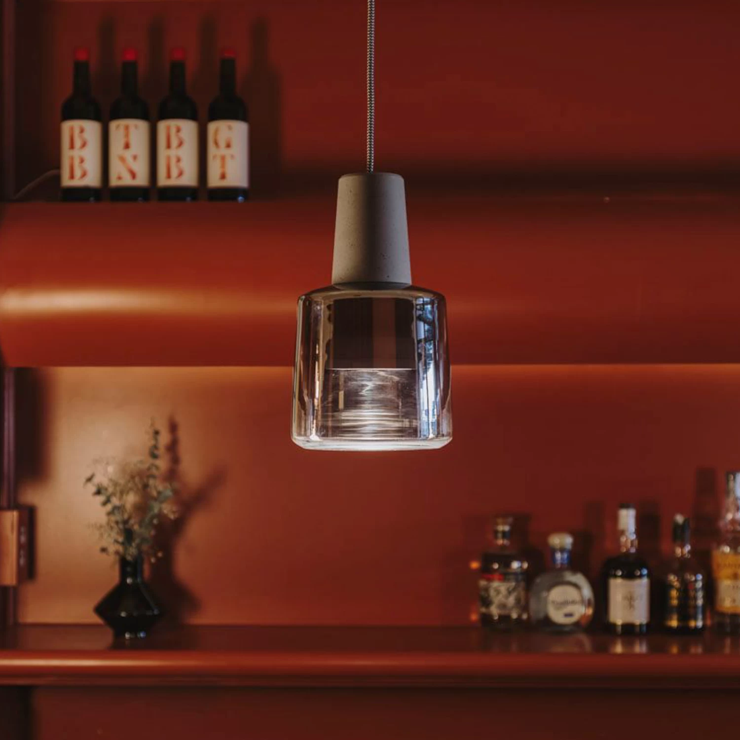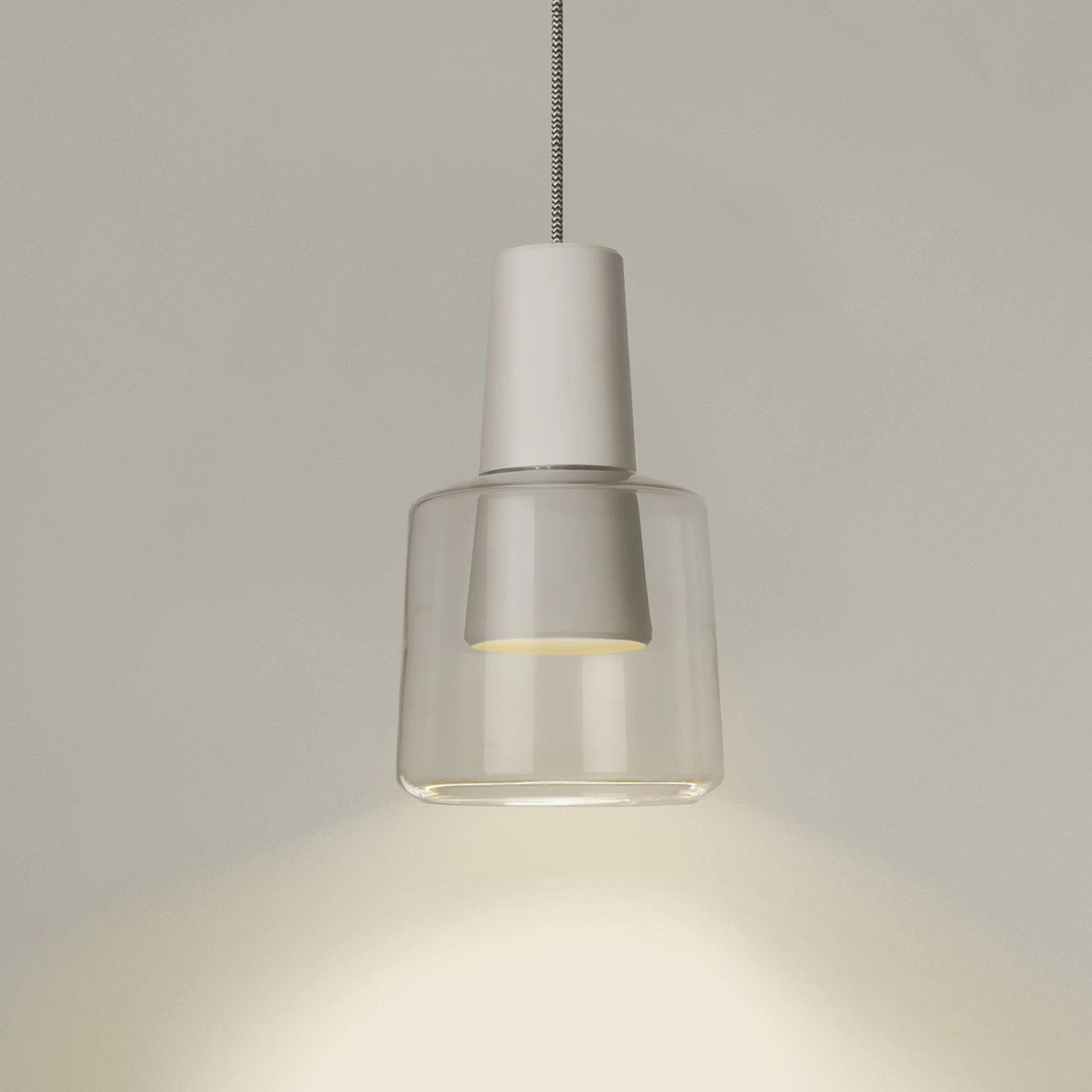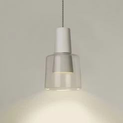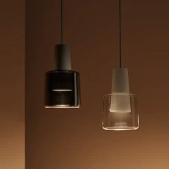 Khoi vereint verschiedene Werkstoffe zu einer ansprechenden Hängeleuchte für modern konzipierte Innenbereiche. Der Leuchtenkörper besteht aus Aluminium in einfarbigem Finish und ist als hoher Kegelstumpf geformt. An dessen unterem Abschnitt setzt der transluzente Glasschirm an, der die Form des Korpus in breiterer Form interpretiert. Die LED-Lichtquelle spendet direkte Beleuchtung für den unterhalb gelegenen Bereich; die Einsatzmöglichkeiten für Khoi reichen von privaten Wohnzimmmertischen, über Empfangstresen bis zu geräumigen Eingangshallen und Treppenaufgängen.