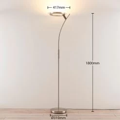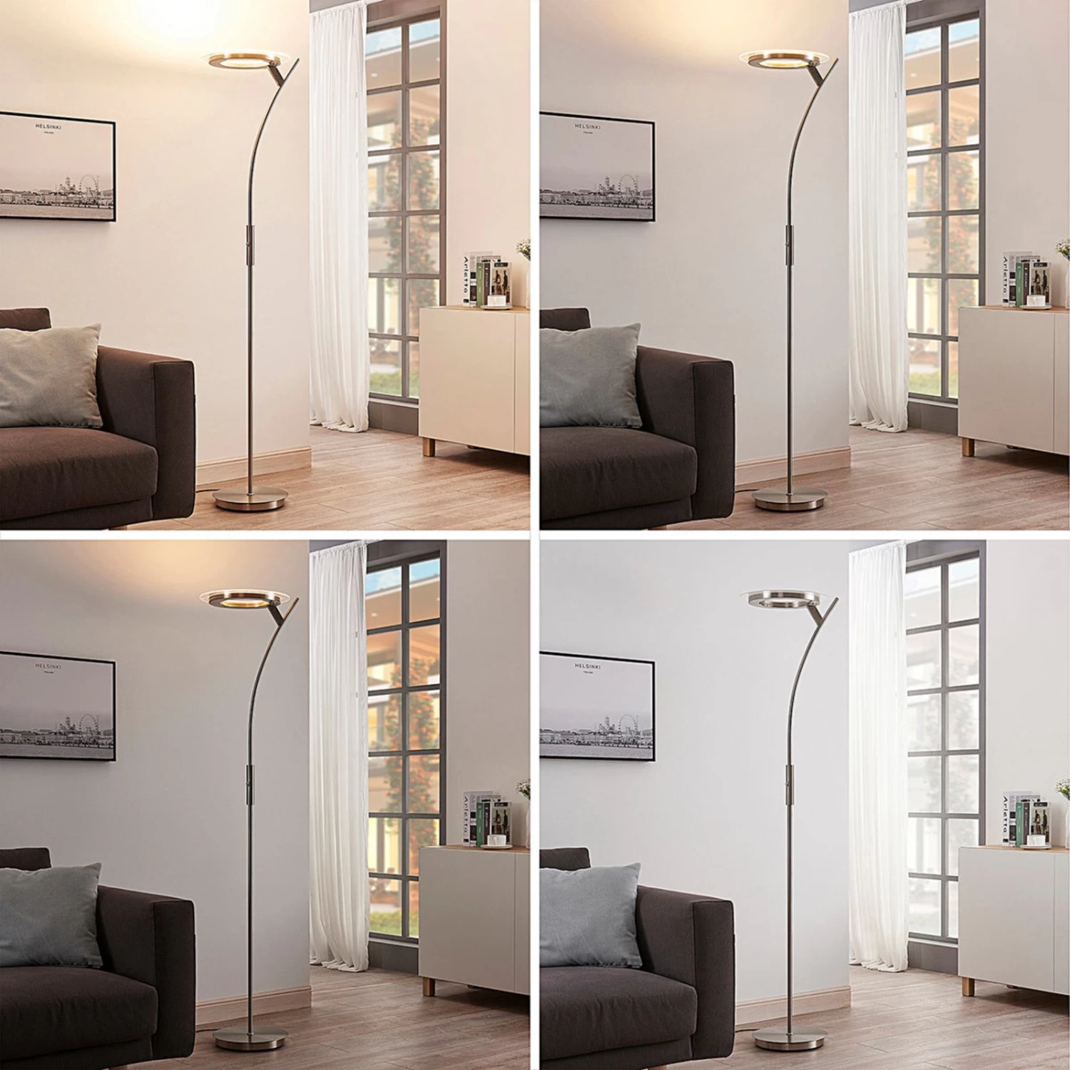 Darion passt mit der indirekten Beleuchtung sehr gut in den Wohnbereich und erzeugt dort behaglichen Lichtschein, der am Abend gut als Akzentbeleuchtung genutzt werden kann und frei von Blendungen ist. Über einen integrierten Tastdimmer lässt sich die Helligkeit bedarfsgerecht variieren und die Länge der Zuleitung beträgt 180 cm. Ein schöner Allrounder für das Wohnzimmer, der mit einer modernen Optik punktet.