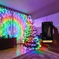 Ein Meisterwerk der modernen Lichtdekoration stellt die RGB-Lichterkette Twinkly dar. Dank eigenem Mini-WiFi und Bluetooth-Konnektivität gelingt die smarte Bedienung via Smartphone sowie Steuerung per Sprachbefehl über gängige Smart Home-Systeme.