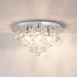 Elegante Kristall- Deckenleuchte Antonino mit chromfarbener Halterung