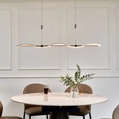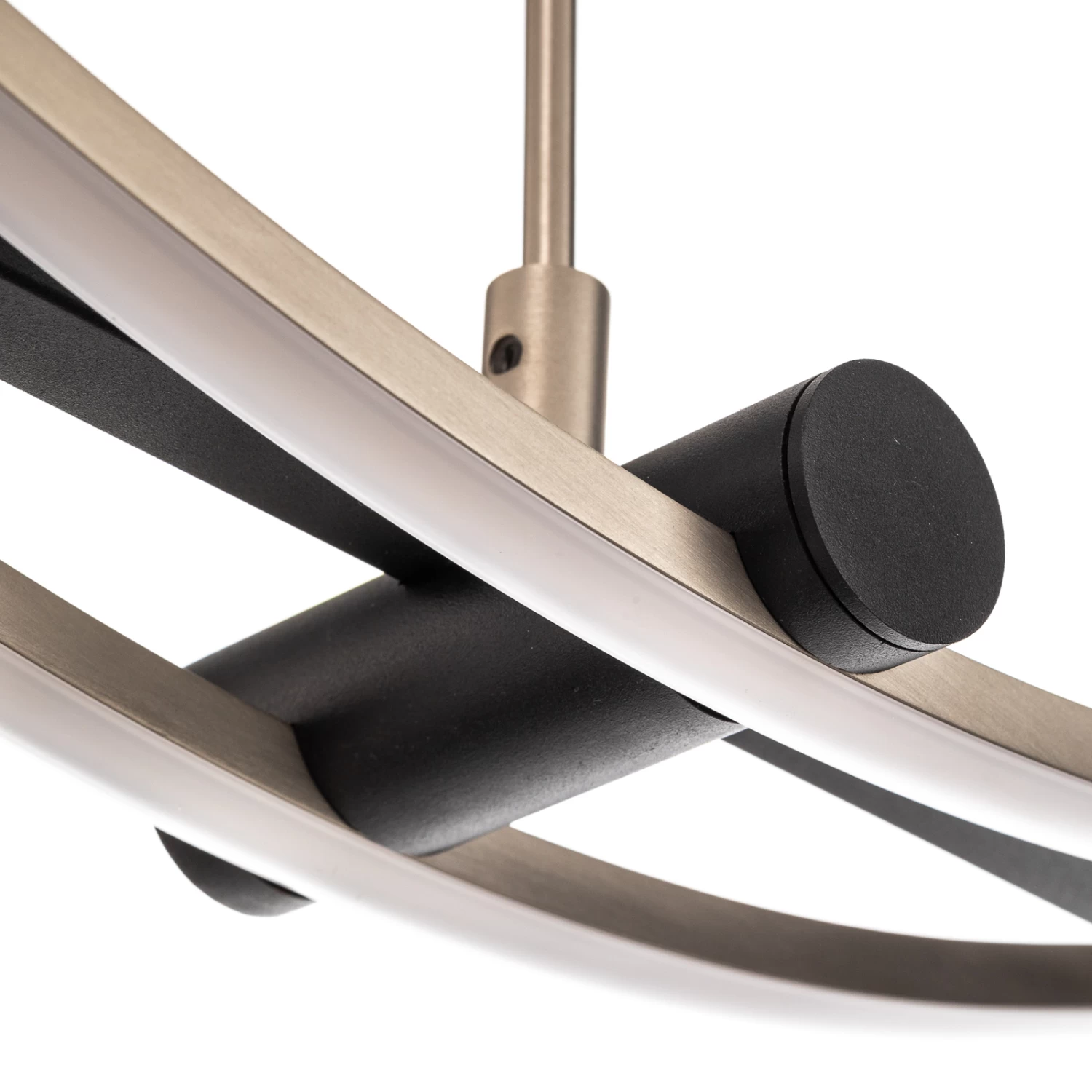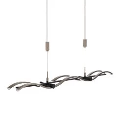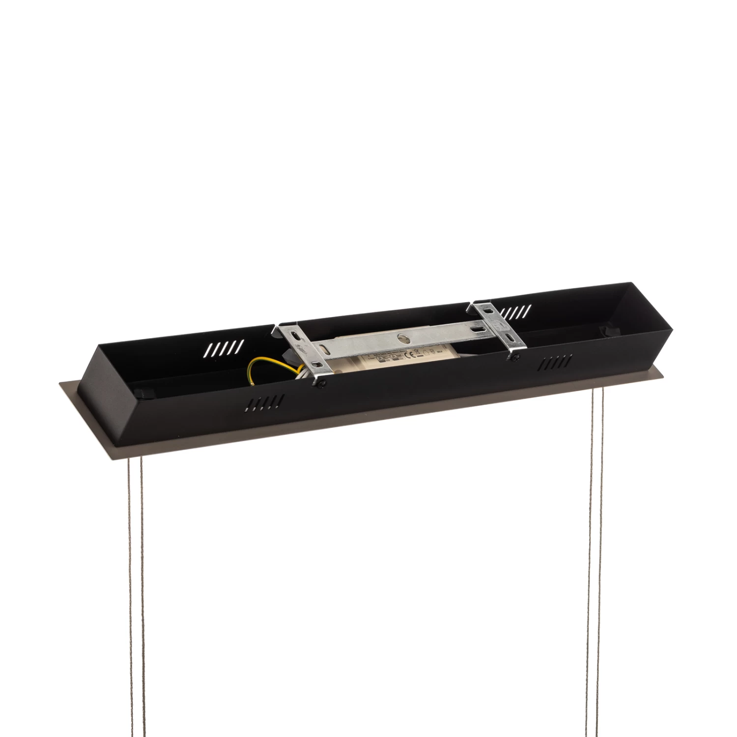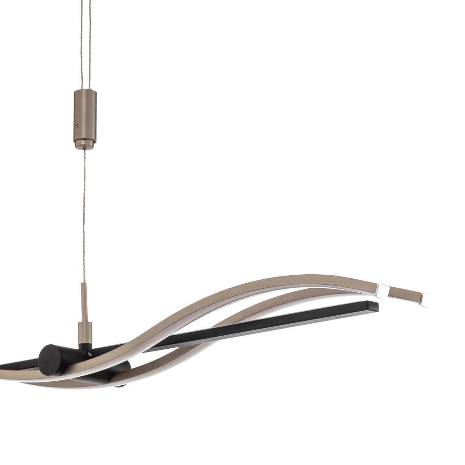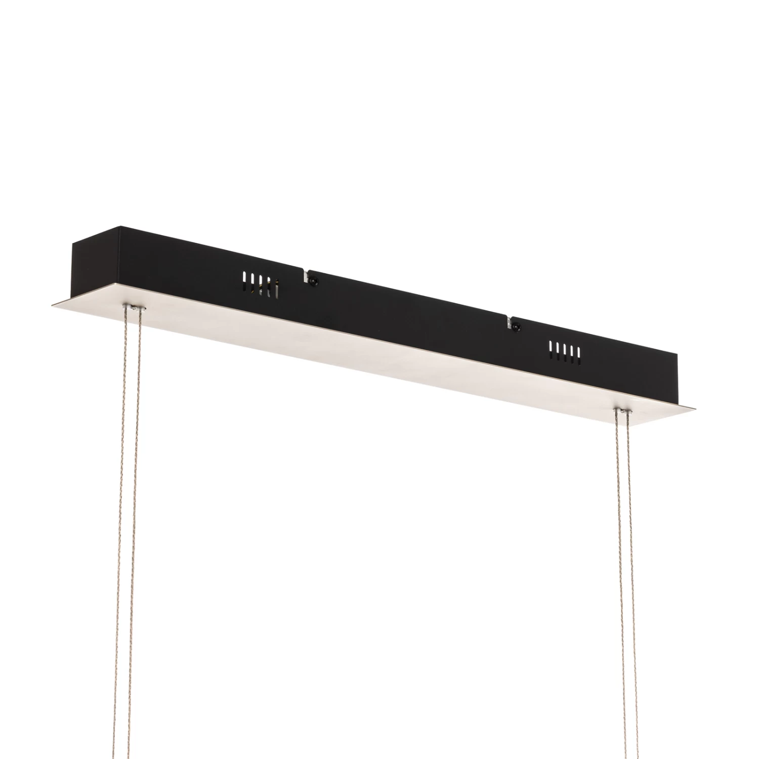Längliche LED-Pendellampe Biavera in Schwarz und Nickel, dreistufig dimmbar über den Wandschalter, höhenverstellbar