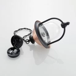 Überdachte Außenbereiche können jetzt wunderbar optisch aufgewertet und zugleich erhellt werden. Dank der Außenpendelleuchte Clint kann zum Beispiel ein Esstisch unter einer Pergola für die sommerlichen Abendstunden beleuchtet werden. Das formschöne Pendel besitzt einen leichten Vintage-Look und überzeugt auf den ersten Blick mit seinem kleinen Dach in Kupfer. Die E27-Fassung wird hier durch einen transparenten Kunststoffschirm geschützt, der zudem optisch mit einem schwarzen Aluminiumgestell umrahmt wird.