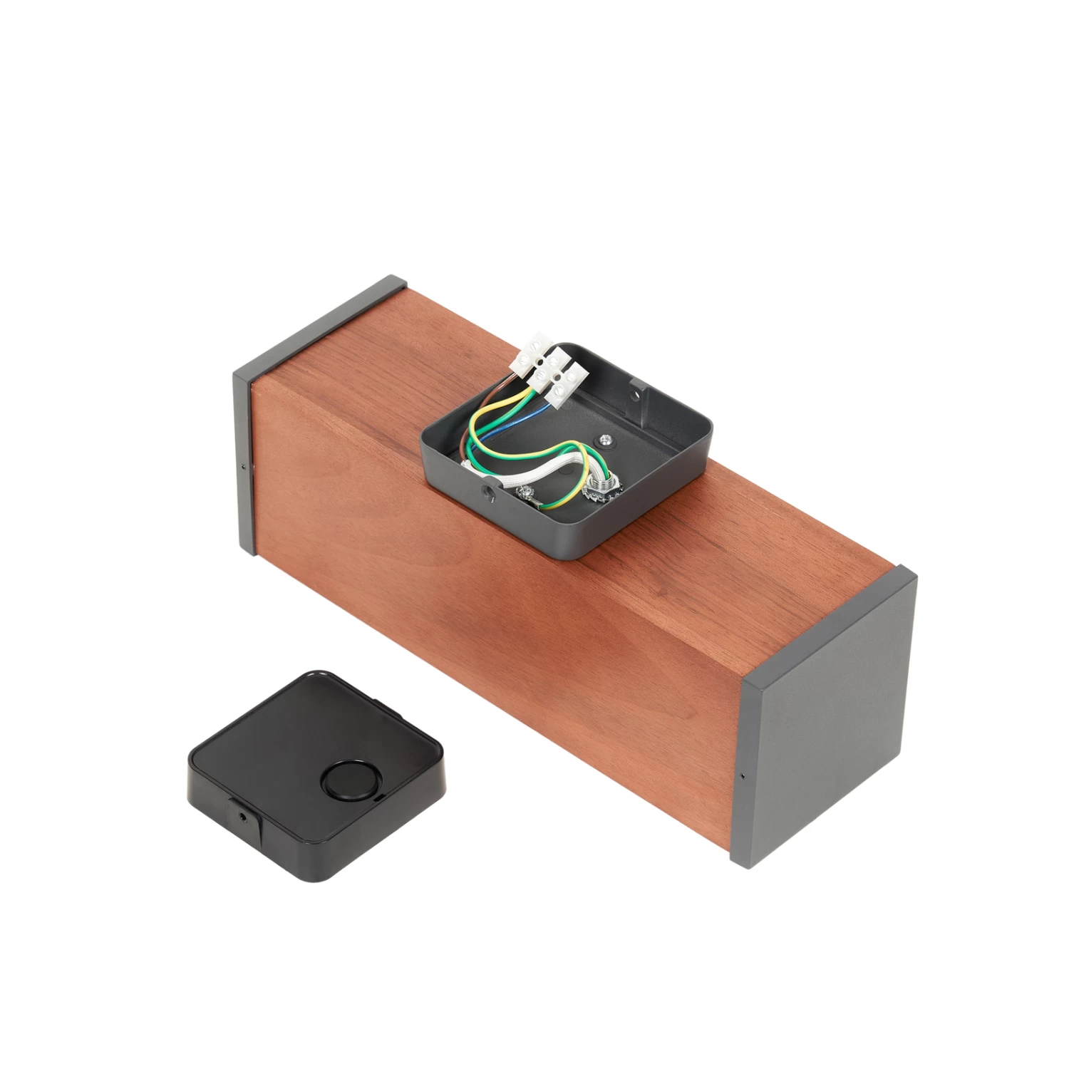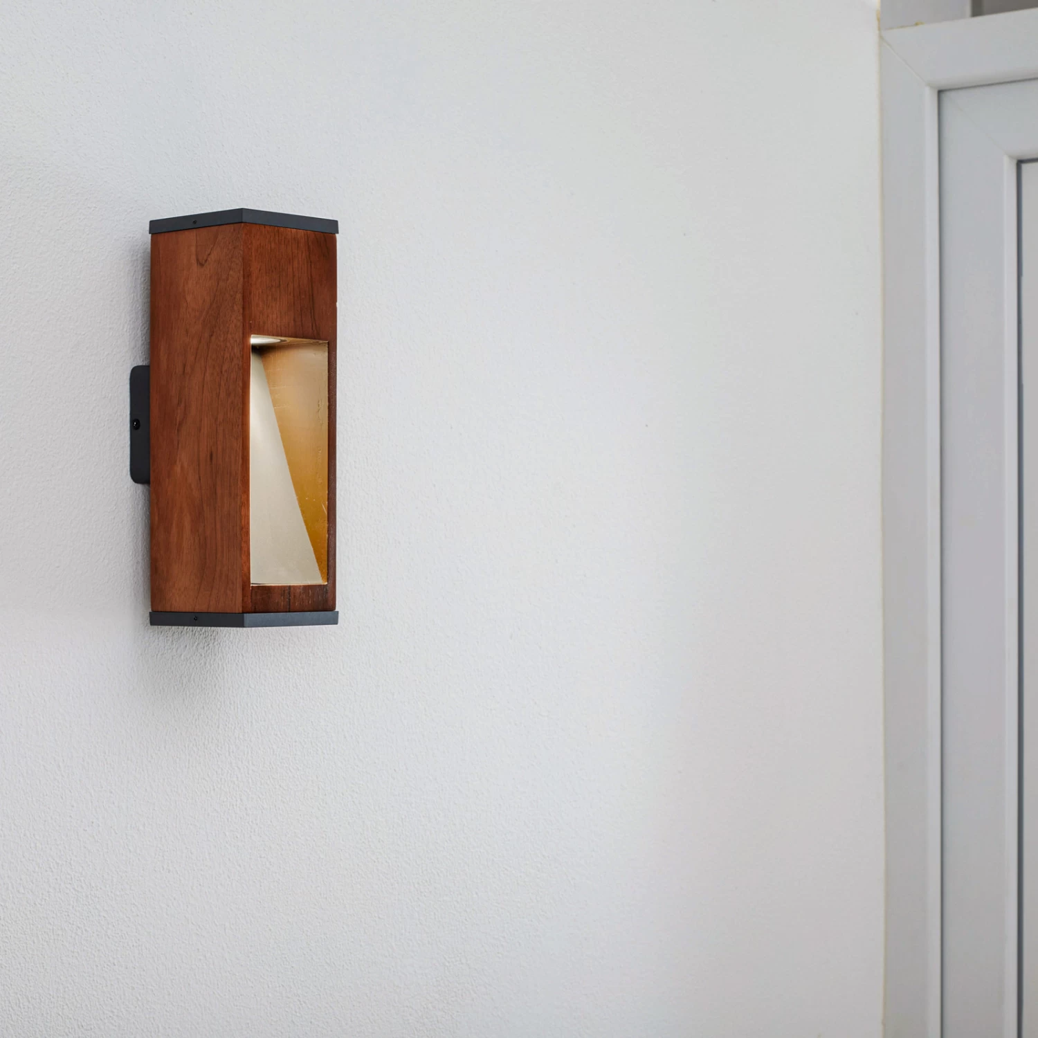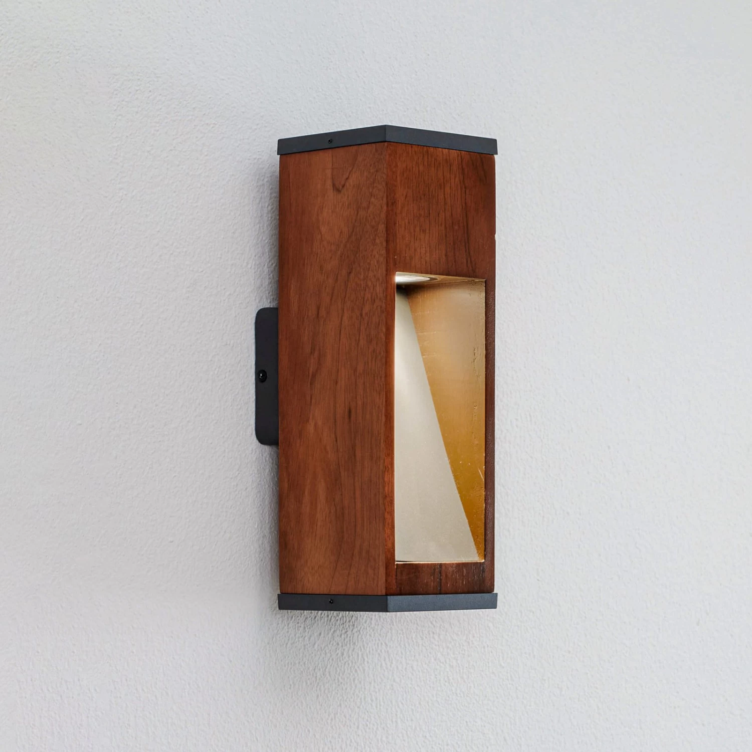 Trendige Außenwandlampe Fredo aus Teakholz in eckiger Form