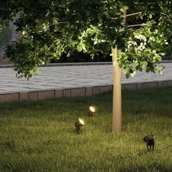 Bei diesen Leuchten handelt es sich um Erdspießstrahler im Dreier-Set, die mit einer funktionalen Gestaltung überzeugen und hervorragend zum Anleuchten bestimmter Objekte oder Flächen im Garten oder Hof genutzt werden können. Der Abstrahlwinkel beträgt 30 Grad. Dank des LED-Betriebs handelt es sich um besonders effiziente Lichtspender für den Außenbereich, die zudem auch gut vor Nässe und Schmutz geschützt sind mit ihrer hohen Schutzart. Sie bieten stets ein angenehmes Licht zum Orientieren nach Einbruch der Dunkelheit und jeder Leuchtkopf kann gedreht und geschwenkt werden.