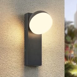 LED-Außenwandleuchte Jasiah aus dunkelgrauem Aluminium mit beweglichem Leuchtenschirm