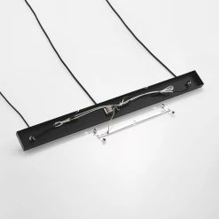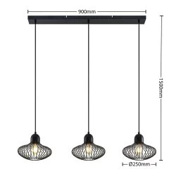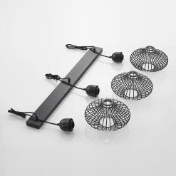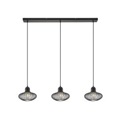 Justinos ist nicht nur eine zuverlässige Hängeleuchte, sondern darüber hinaus ein attraktives Dekorationsstück. Sie besteht aus Eisen, welches in einem stilvollem Mattschwarz gehalten ist. An ihrer länglichen Deckenhalterung sind drei Leuchtenschirme angebracht, welche mit ihrem Aussehen an Käfige erinnern. Die Fassungen, die sich hinter den Streben befinden, können mit entsprechenden Leuchtmitteln bestückt werden, deren Licht durch die Käfige gebrochen wird. Justinos findet innerhalb eines Wohnzimmers ihren perfekten Platz und setzt attraktive Akzente innerhalb der Inneneinrichtung.