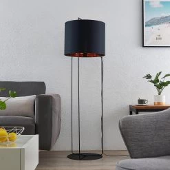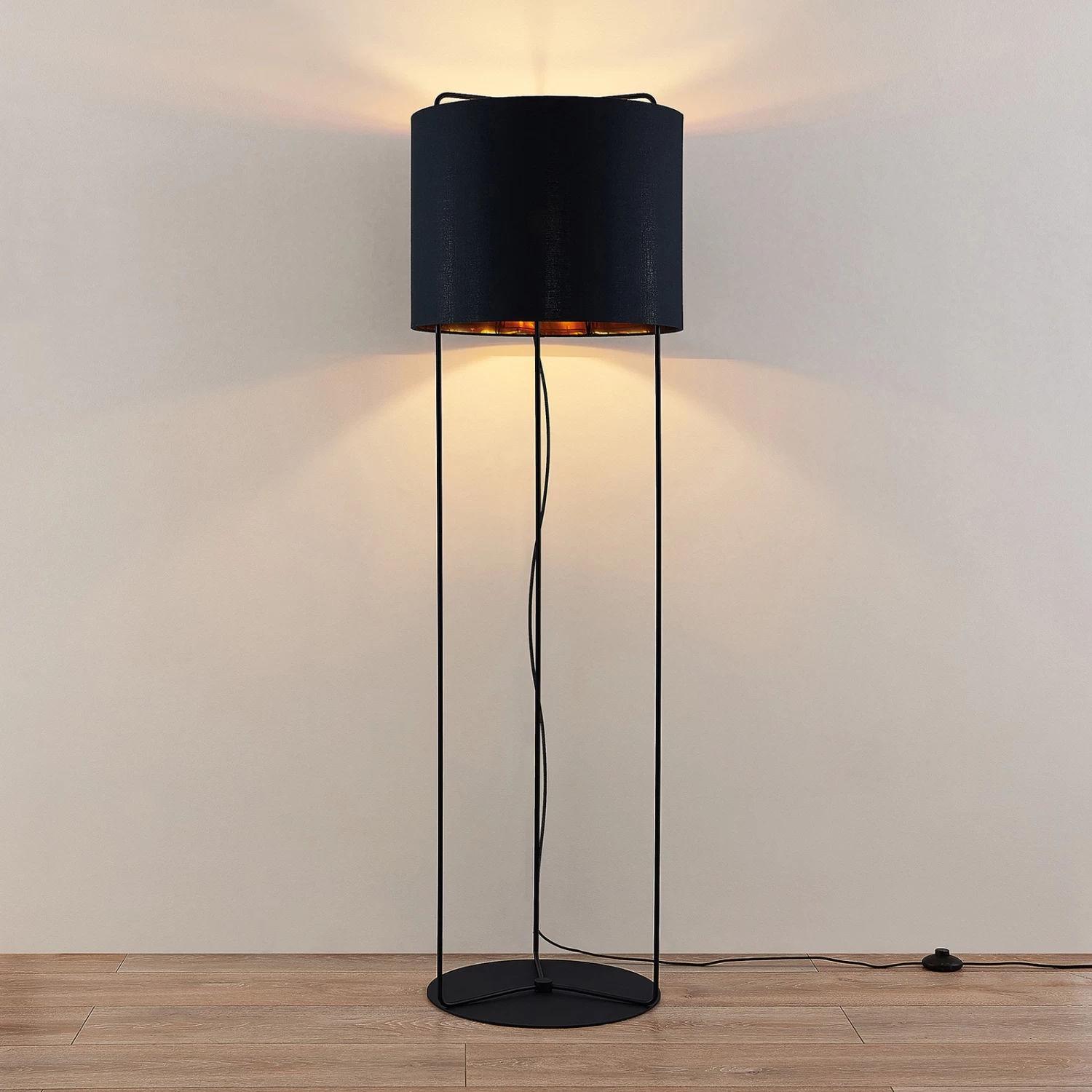 Kesta weiß auf ganzer Linie zu überzeugen mit ihrem modernen, designorientierten Aussehen und punktet auch in Sachen Lichtwirkung. Die Stehlampe setzt sich zusammen aus einem Stoffschirm, der an der Außenseite schwarz und innen schön golden ist, und einem filigranen Metallgestell aus drei Streben, die in der Mitte am Boden zusammengeführt werden. Nicht nur der Farbkontrast ist sehr sehenswert, auch die Lichtabstrahlung ist durch das goldenen Innenfinish besonders warmtönig. Die Stehleuchte ergänzt moderne Einrichtungen mit eleganter Ausstrahlung oder jugendlichem Touch auf sehenswerte und vor allem stilvolle Weise.
