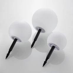 Dieses 3er-Set Solarlampen ist die ideale Dekoration für jeden Außenbereich, ob Garten, Balkon oder Terrasse. Jede Kugel wird über Solartechnik betrieben und ist mit einem praktischen Erdspieß ausgestattet. So können die Solarkugeln, die jeweils unterschiedliche Durchmesser aufweisen, auf dem Rasen, im Gartenbeet oder auch im Blumenkübel verwendet werden. Das Licht leuchtet hier wahlweise in einem kühlen Tageslichtweiß oder mit einem bunten Farbwechsel. Die RGB-LEDs im Innern sorgen für grünes, blaues und rotes Licht im Wechsel.