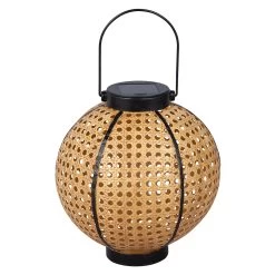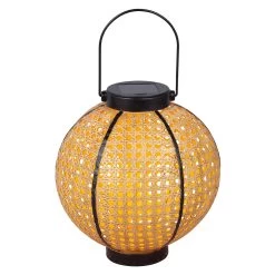 Diese Solarleuchte verfügt über einen Henkel und ist somit ein portabler Lichtspender für den Außenbereich, der für den Betrieb lediglich das Sonnenlicht braucht und dann mit einem schönen LED-Licht punktet, sobald sich das Tageslicht verabschiedet. Die Kugelleuchte mit Solartechnik und Griff ist ineiner dekorativen Bambusoptik gehalten und strahlt somit etwas Natürliches aus. Sie zählt zu den Dekorationsleuchten und ist sowohl für den Einsatz auf Terrasse und Balkon geeignet als auch für die Nutzung im Garten, wobei eine Umplatzierung mit nur einem Handgriff vorgenommen werden kann. Das Solarpanel sitzt auf der Oberseite und wenn der Akku voll geladen ist, ergibt sich eine Leuchtdauer von bis zu 8 Stunden, so dass warme Sommerabende draußen perfekt illuminiert werden können.