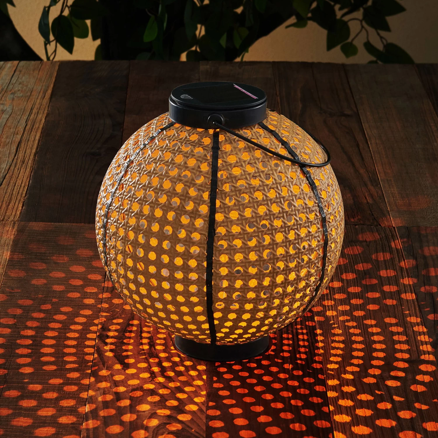 LED-Solarlaterne Lemark in dekorativer Bambusoptik und Kugelform, schöner Lichtspender für Garten und Terrasse
