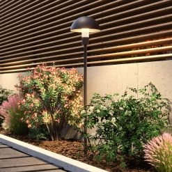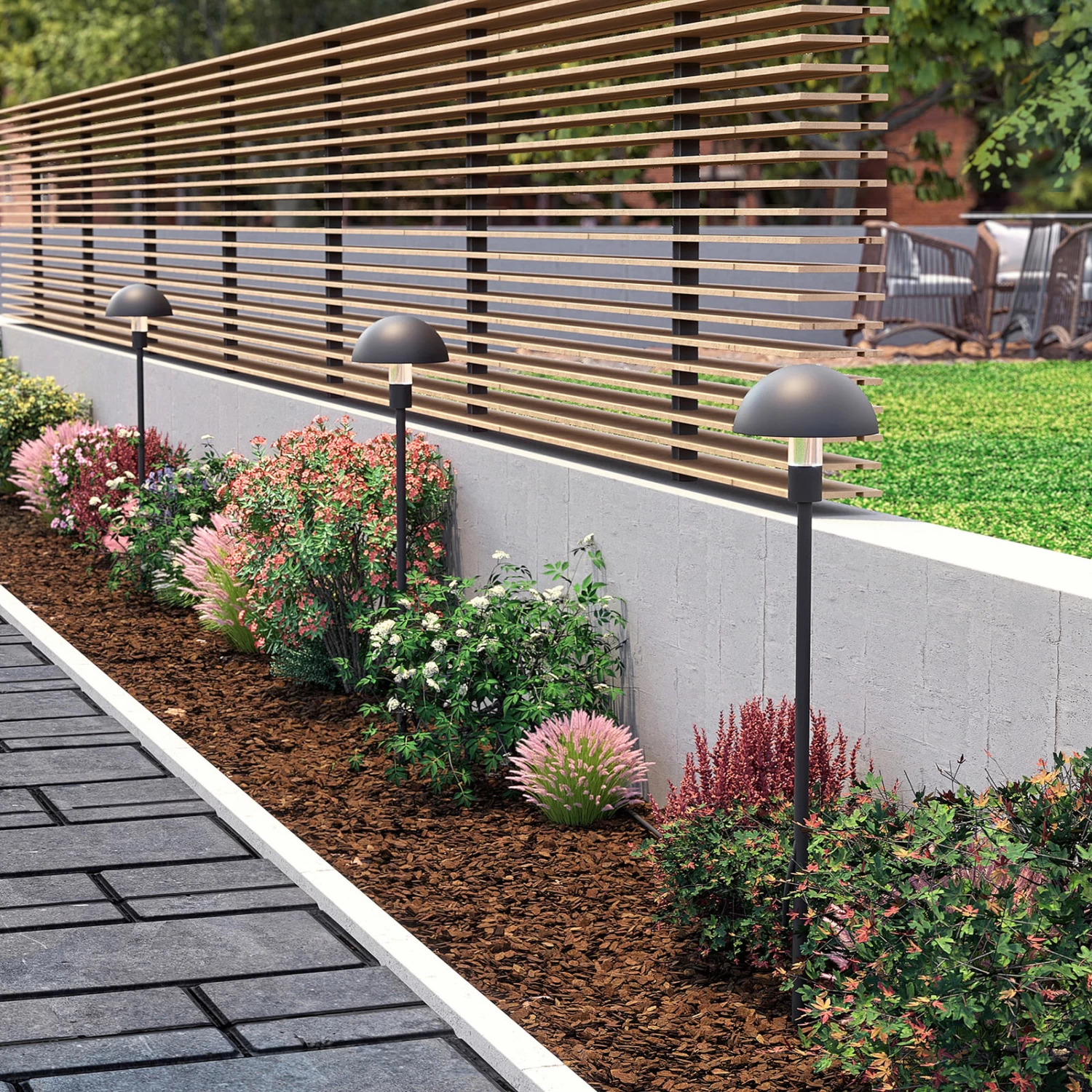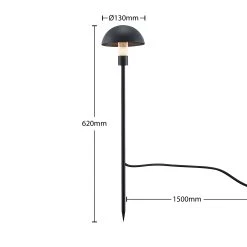 Bei Lordy handelt es sich um eine sehr attraktive Erdspießleuchte, die hier im Set von drei Stück geliefert wird. Betrieben wird die Leuchte mit modernen, effizienten LEDs, die ihr in Licht rundum in einem Winkel von 360 Grad abstrahlen und so für eine schöne Orientierungsbeleuchtung rund um das Haus und im Garten sorgen. Damit kann man sich auch nach Einbruch der Dunkelheit noch frei bewegen und erkennt Stolperfallen schneller. Das Leuchtendesign mutet sehr ansprechend und individuell an und erinnert den ein oder anderen Betrachter vielleicht sogar ein bisschen an einen Pilz. Die Oberfläche des aus Aluminium bestehenden Leuchtenkörpers ist in Schwarz gehalten, das mit dem leicht glänzenden Finish eine kühle Eleganz mit moderner Ausstrahlung verkörpert. Mit der hohen Schutzart ist hervorragender Schutz vor Nässe und Schmutz geboten.