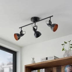 Der Deckenstrahler Morgana verfügt über drei bewegliche Strahler, die alle individuell gedreht und geschwenkt werden können. So kann das Lichtbild möglichst zielgerichtet bestimmt werden. Zudem sind die einzelnen Schirme alle außen schwarz, während die Innenseite jedoch golden getönt ist. Dadurch entsteht nicht nur ein Kontrast in der Optik, sondern auch eine warme Lichtabstrahlung, die besonders wohnlich daherkommt. In der dreiflammigen Ausführung ist Morgana als Strahler besonders schön für Wohnbereiche und Küchen geeignet, wobei die Ergänzung um weitere Lichtquellen durchaus denkbar ist.