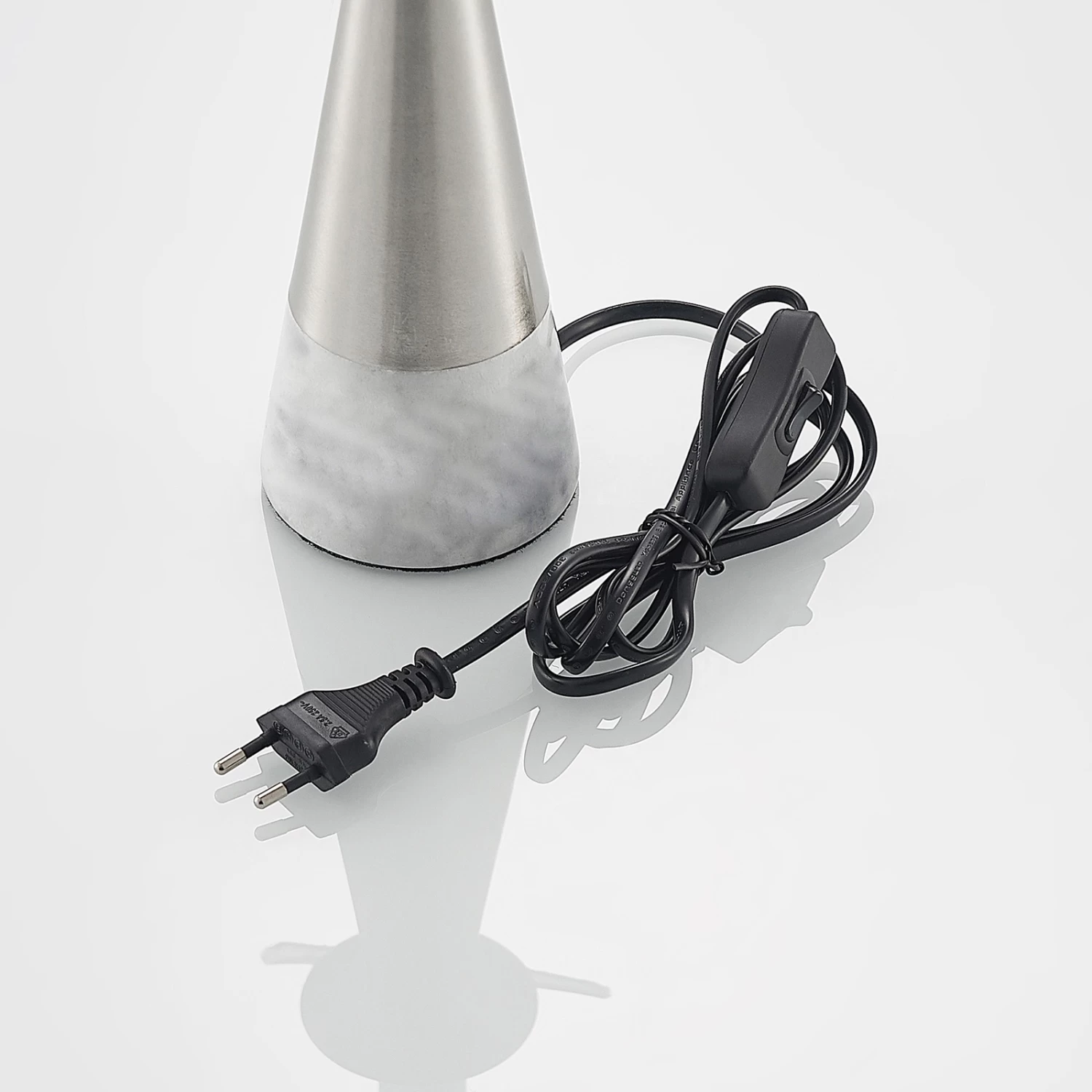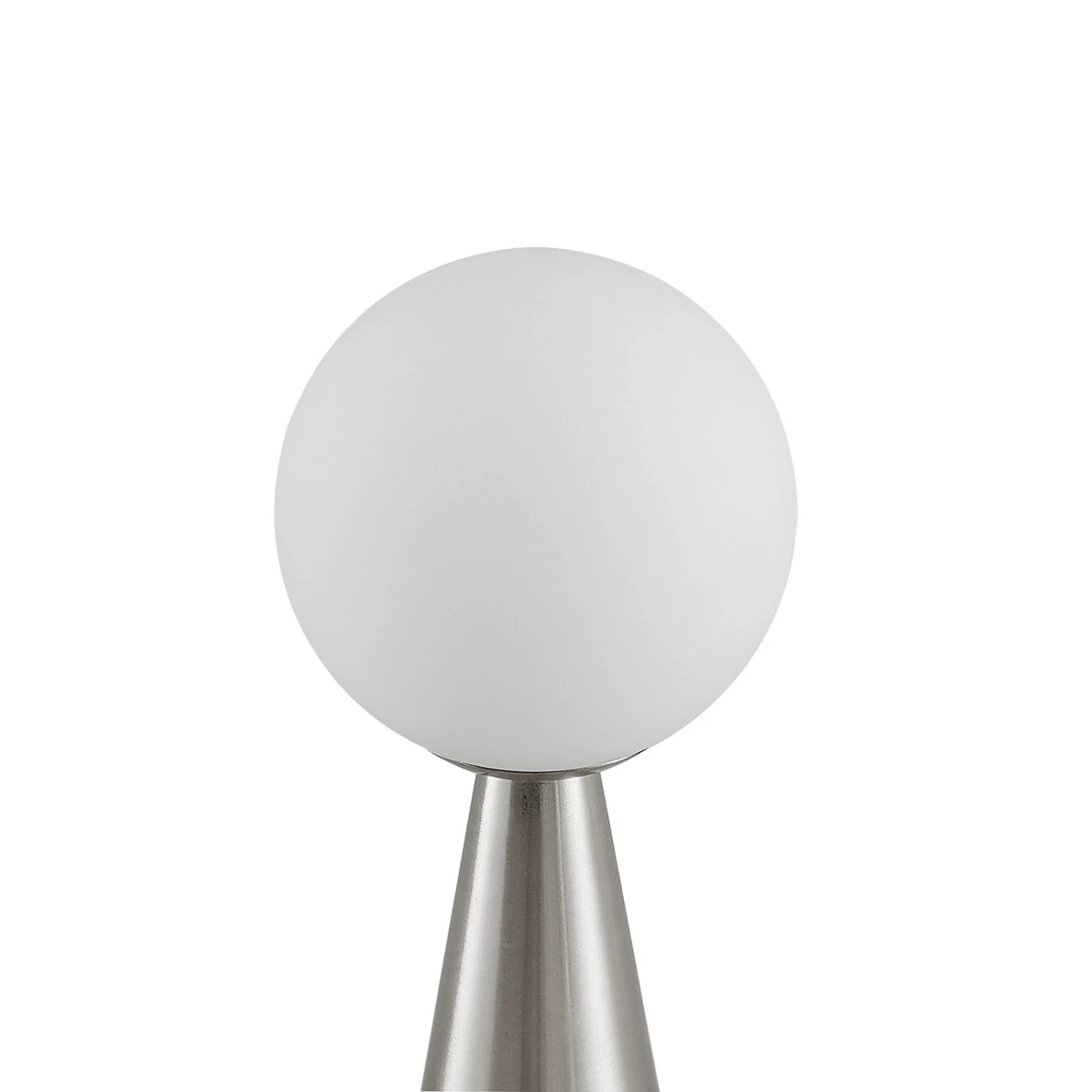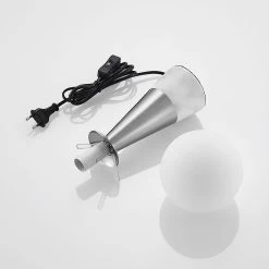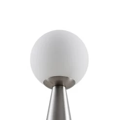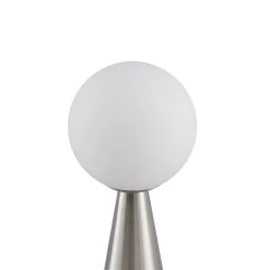 Noana findet ihren perfekten Platz auf einem Tisch oder auf einer Kommode und generiert eine attraktive Akzentbeleuchtung. Ihr Standbein besteht aus robustem Marmor sowie Stahl und erscheint in einer Kegelform. An der Spitze der Leuchte sitzt ein kugelförmiger Leuchtenschirm, welcher aus opalfarbenem Glas besteht und das einzusetzende Leuchtmittel umgibt. Die Tischleuchte Noana ist über ein Steckerkabel mit dem Stromkreis verbunden, an dem ein Schalter sitzt, über den sie unkompliziert ein- und ausschaltbar ist. Ihr elegantes Design integriert sich gut in das meiste Mobiliar und die geschmackvolle Farbgebung aus Nickel und Opalweiß runden den stilvollen Charakter der Leuchte ab.