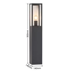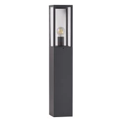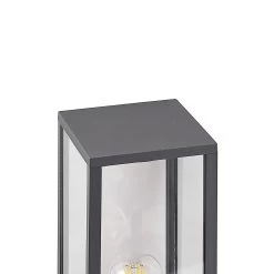 Die Wegeleuchte Peldar spricht mit ihrem auffälligen Design ganz für sich. Sie ist ganz in Dunkelgrau gestaltet und hat eine eckige Bauform. Das Gestell besteht aus Aluminium und hat vier Glaseinsätze als Leuchtenschirm, sodass die Brennstelle von allen Seiten gut sichtbar bleibt.