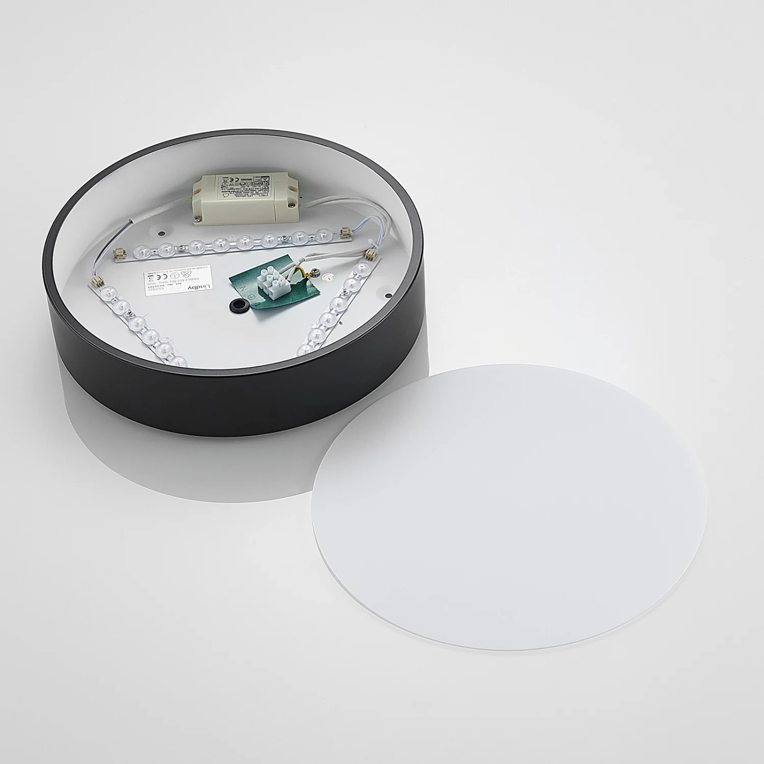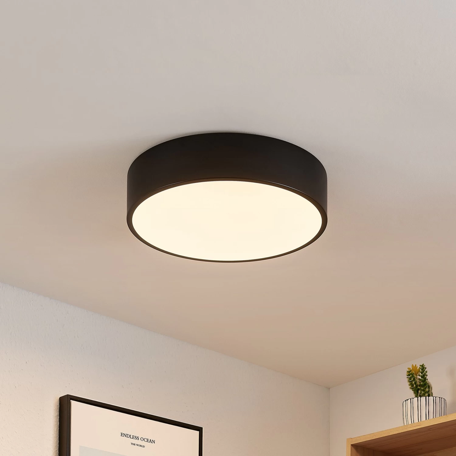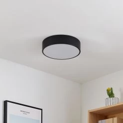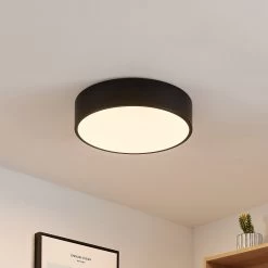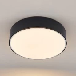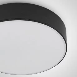 Runde LED-Deckenleuchte Simera mit schwarzem, flachem Schirm aus Kunststoff