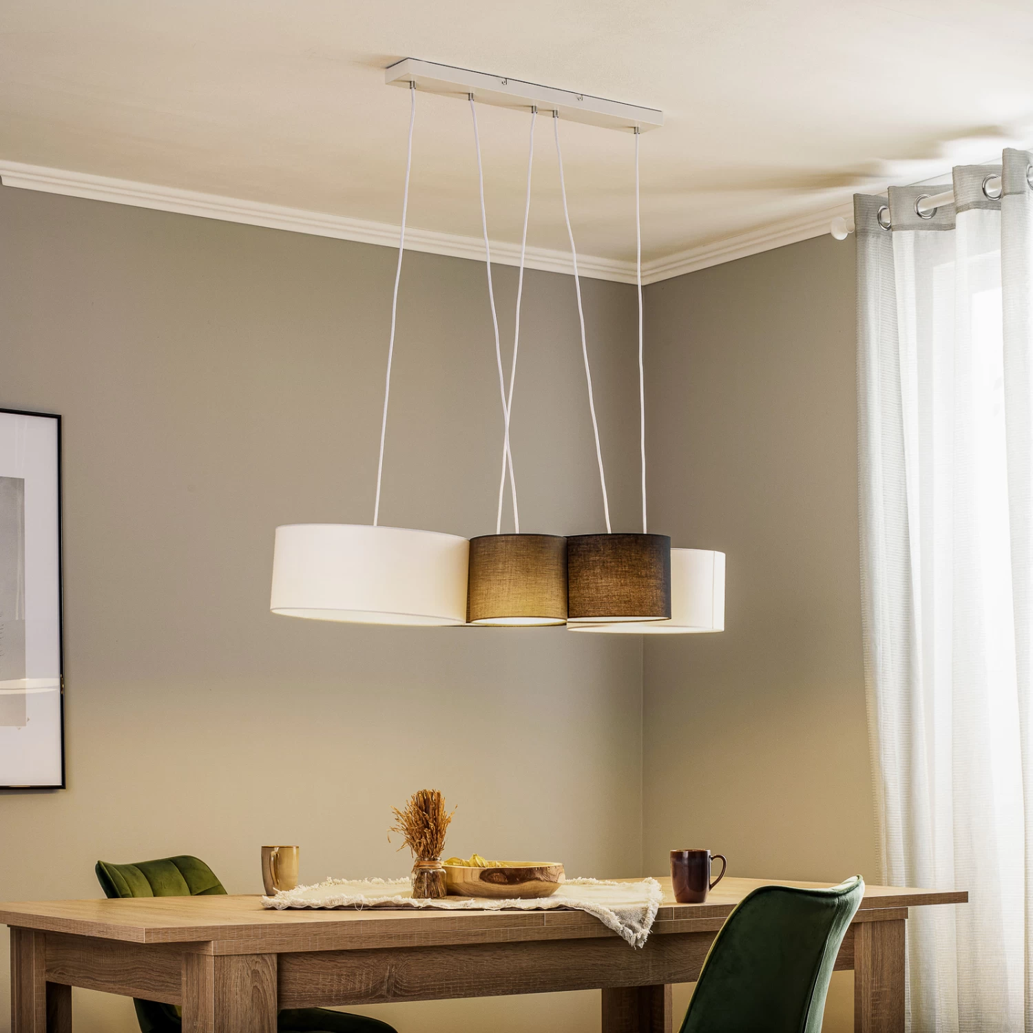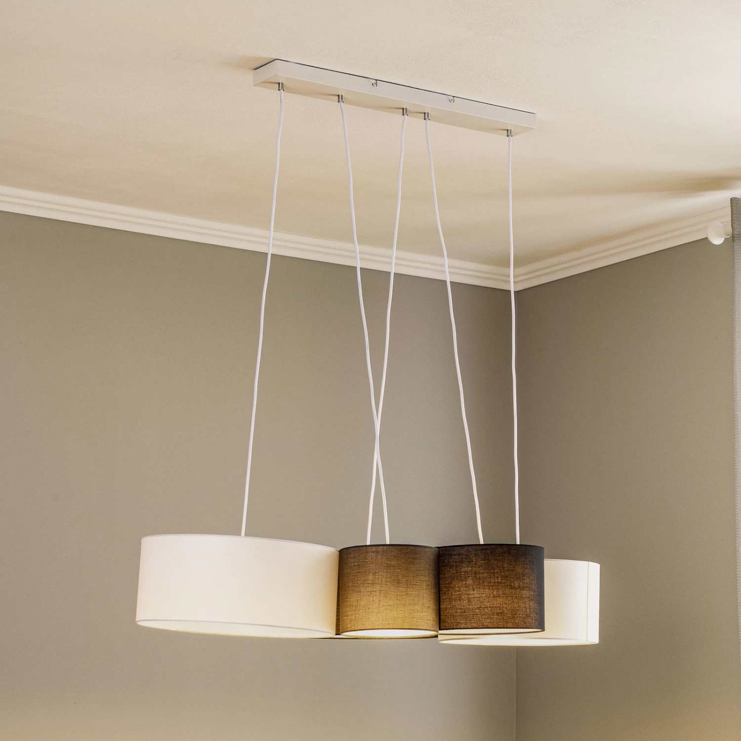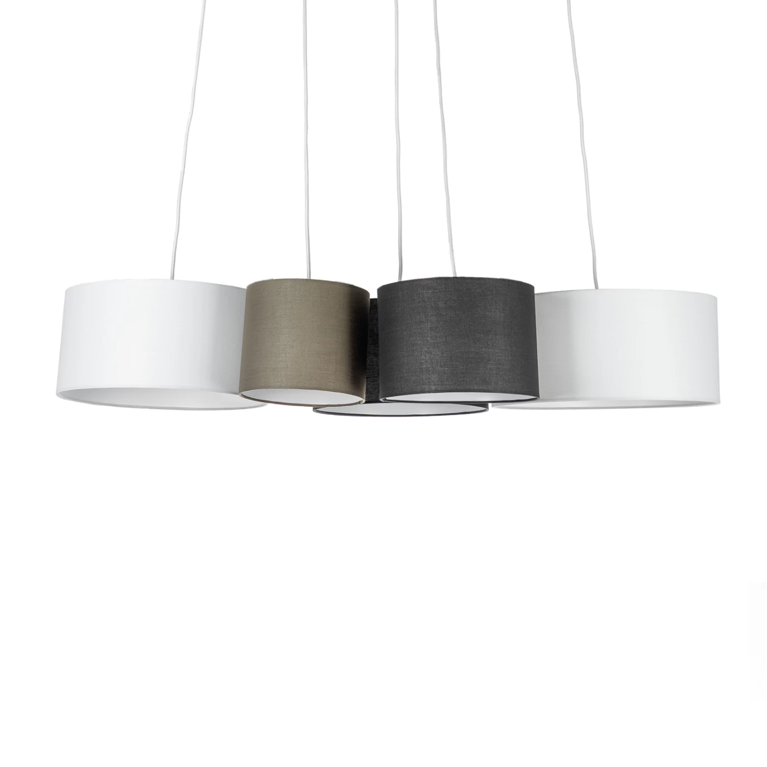Individuelle Hängeleuchte Vironi mit dunklen und hellen Leuchtenschirmen