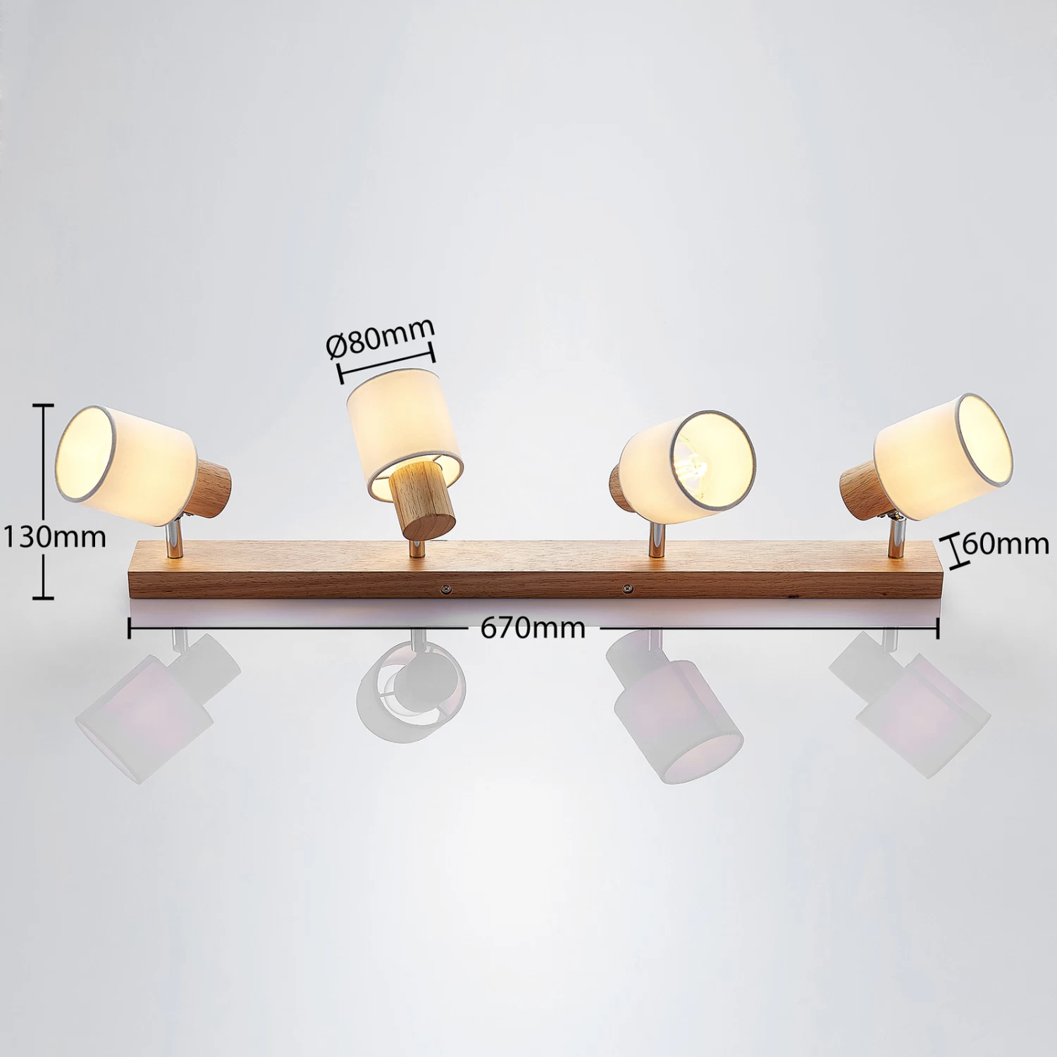 Vierflammige Holz-Deckenleuchte Wanessa mit beweglichen Strahlern