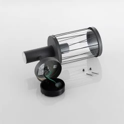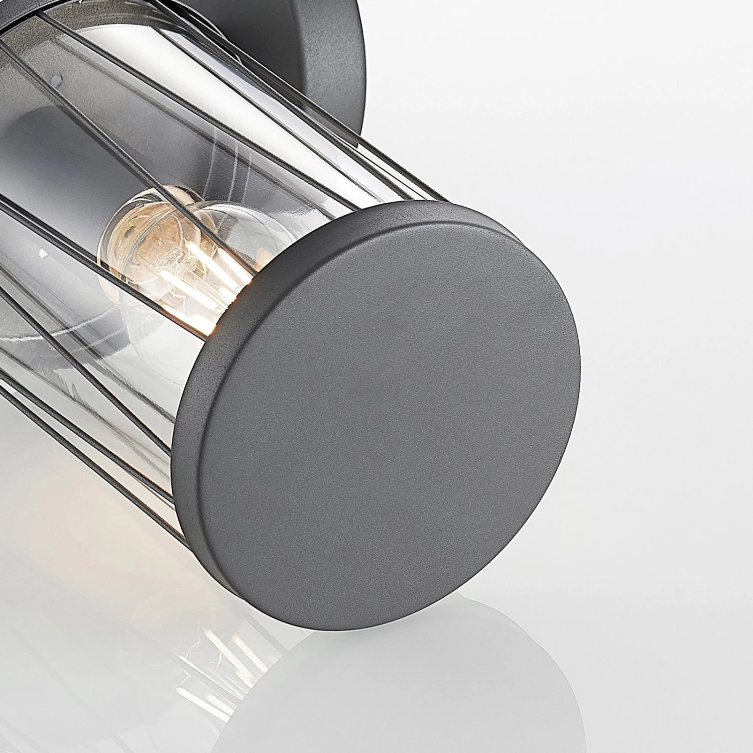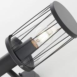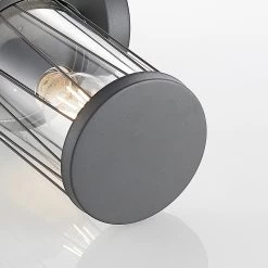 Yonan setzt sich zusammen aus einem dunkelgrauen Edelstahlgestell und einem zylindrischen Einsatz aus klarem Polycarbonat. Der Schirm ist für den Einsatz im Außenbereich gut abgedichtet und die filigranen Stäbe in schräger Form, die sich rund um den Kunststoff fügen, individualisieren das Erscheinungsbild auf stilvolle Weise. Das Leuchtmittel ist zu jeder Zeit gut sichtbar und damit Teil des Gesamtdesigns. Besonders stilsicher fährt man daher mit dem Einsatz von Filament- oder Rustikalampen, die ganz wie die gute, alte Glühlampe gestaltet worden sind.