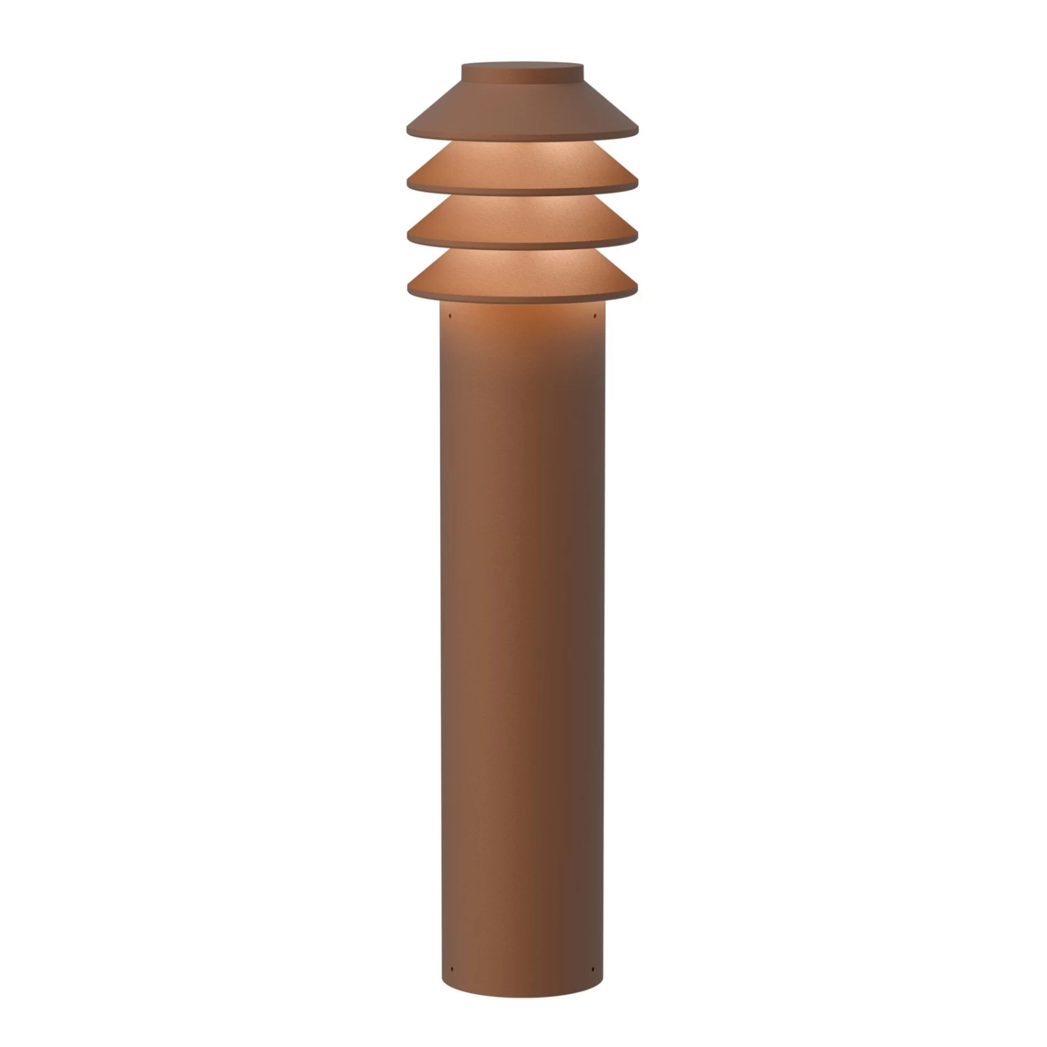 Die LED-Sockelleuchte Bysted Garden im Farbton Corten sorgt für eine sichere Ausleuchtung auf dem Grundstück. Die Sockelleuchte wird inklusive Bodenplatte für die Aufputzmontage geliefert.
