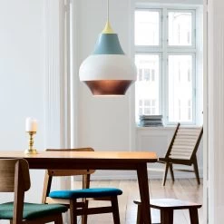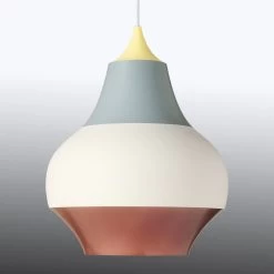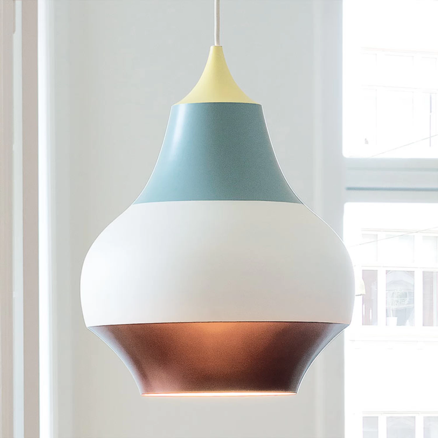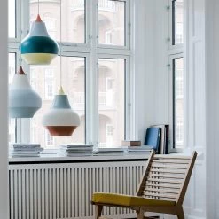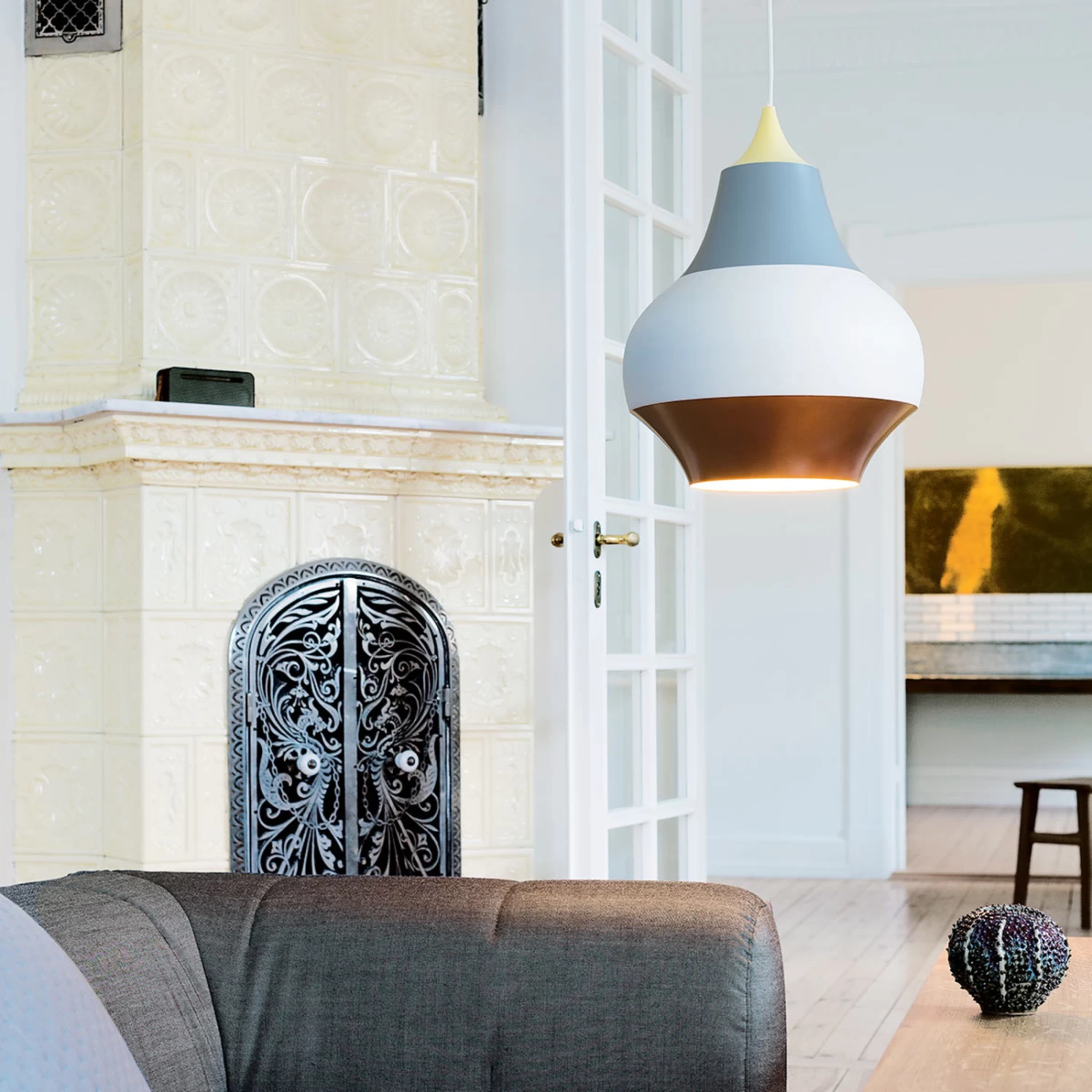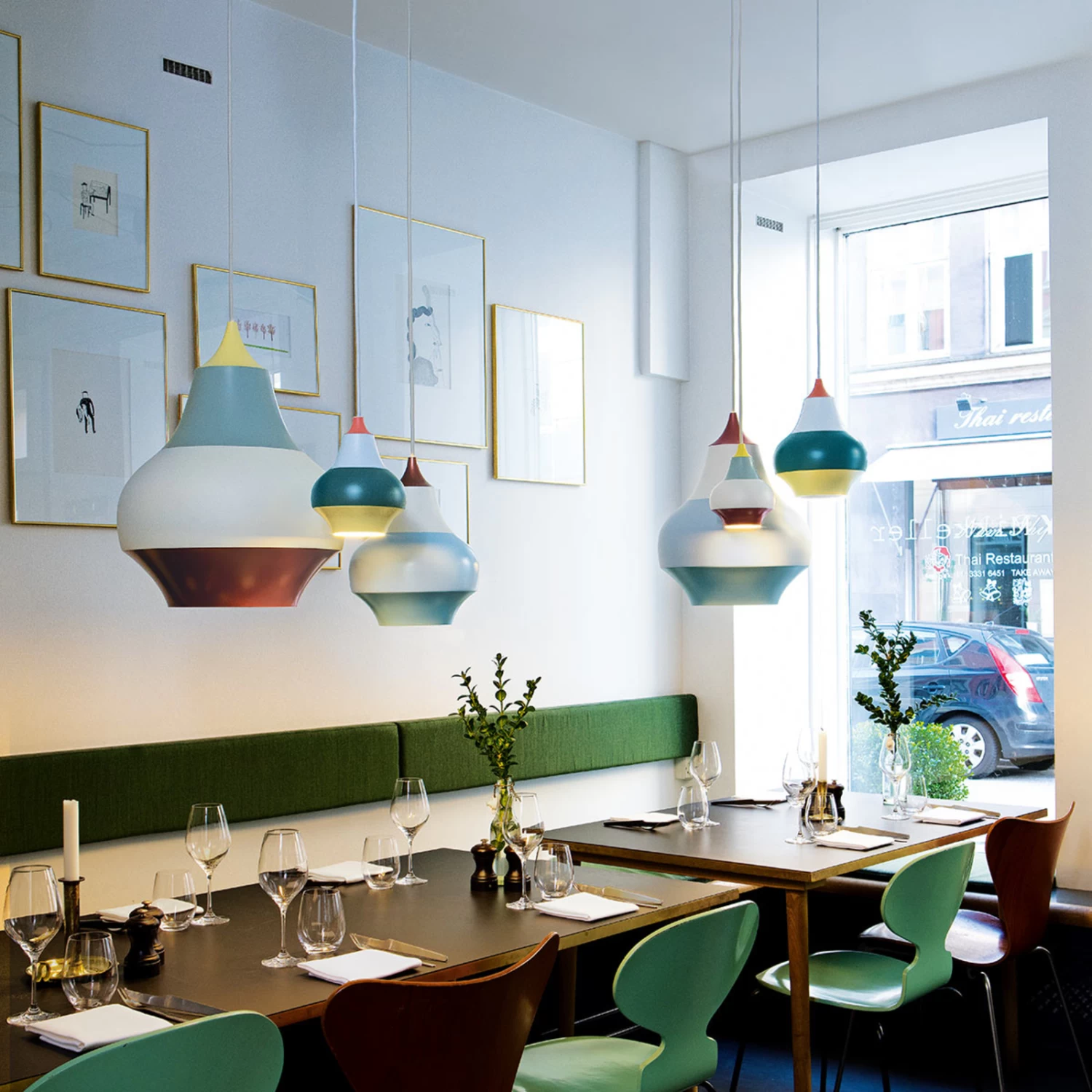 Die Hängelampe Cirque wirkt durch die besondere Farb- und Formgestaltung nicht nur angeschaltet, sondern auch unbeleuchtet als Blickfang im Raum. Das liegt einerseits an der schönen Farbabstufung und andererseits an der Form, die von den bekannten Zwiebeltürmen im Tivoli-Garten inspiriert wurde. Die Abstufung der einzelnen Farben bezieht sich auf die Wahrnehmung von Farben in kreisförmiger Bewegung, wobei sie häufig als durchgehende Linien wahrgenommen werden.