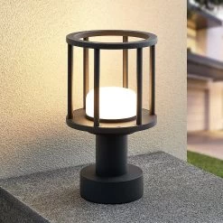 Die Sockellampe Benerike schafft es, selbst bei Dunkelheit einen Garten oder eine Einfahrt perfekt in Szene zu setzen. Ihre Leuchtenkörper besteht aus Aluminium und besitzt eine dunkelgraue Oberfläche, welche sich unkompliziert in das Ambiente des Außenbereiches integriert. Ihr Leuchtenschirm ist zylinderförmig und besteht aus Streben, die einen Käfig andeuten und das einzusetzende Leuchtmittel umgeben. Diese Leuchtmittel können entsprechend der Vorgaben frei gewählt werden und somit kann die Entscheidung über Lichtintensität und Lichtfarbe den persönlichen Bedürfnissen angepasst werden. Für einen stimmigen Gesamteindruck kann Benerike mit weiteren Leuchten ihrer Serie kombiniert werden.