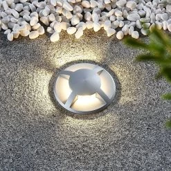 Edwina ist ein sehr hilfreicher Lichtspender entlang von Gartenwegen und kleineren Zufahrten. Die Bodeneinbauleuchte besitzt eine hohe Stoßfestigkeit (IK08) und kann bis maximal 500 kg belastet werden, so dass sie ohne Probleme begehbar ist, ohne dass Schaden entsteht. Betrieben wird die Leuchte für den Bodeneinbau mit einer energieeffizienten GU10-Lampe, die im besten Fall mit LED-Technik ausgestattet ist. Die Schutzart IP67 zeigt einen hohen Schutz vor Schmutz und Wasser an, so dass die Nutzung im Außenbereich problemlos möglich ist. Der Lichtschein dringt sanft und blendfrei an die Umgebung, so dass sich das Licht von Edwina gut zum Orientieren nach Einbruch der Dunkelheit eignet.