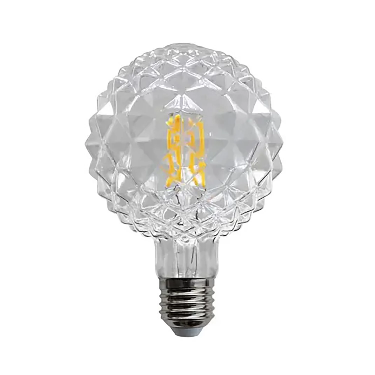 Diese LED-Globelampe ist außergewöhnlich gestaltet mit dem interessant strukturierten Glaskolben, der für eine ganz besondere und atmosphärische Lichtwirkung sorgt, weil der Lichtschein mehrfach gebrochen und reflektiert wird und sich in einem Spiel aus Licht und Schatten im Raum abbildet. Die LED-Filamentlampe mit den G95-Abmaßen lässt sich zudem bei Bedarf dimmen, hat eine warmweiße Lichtfarbe und einen hohen CRI-Wert, der eine besonders gute Farbwiedergabe ermöglicht.