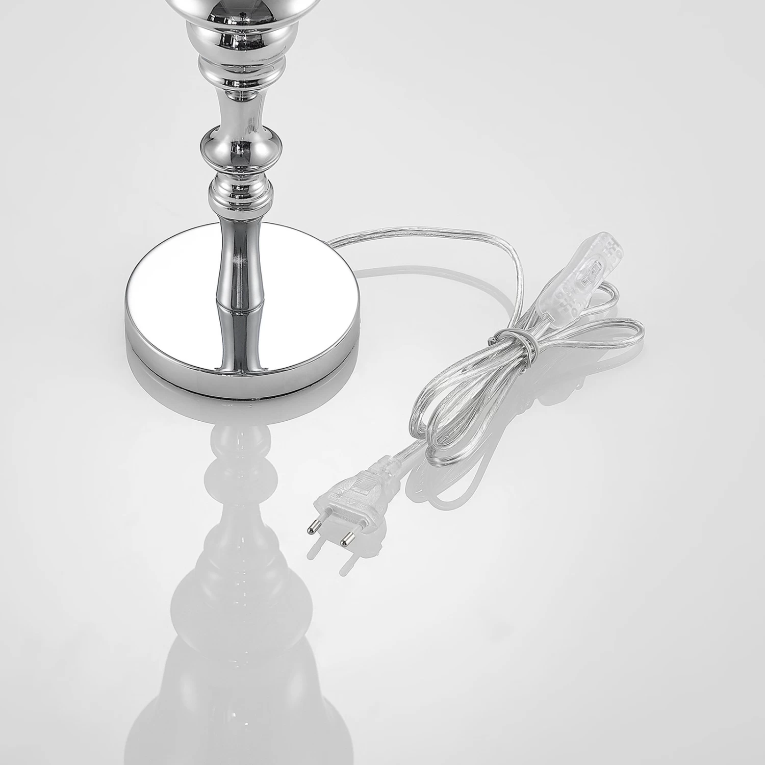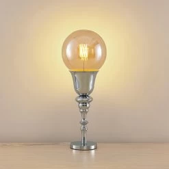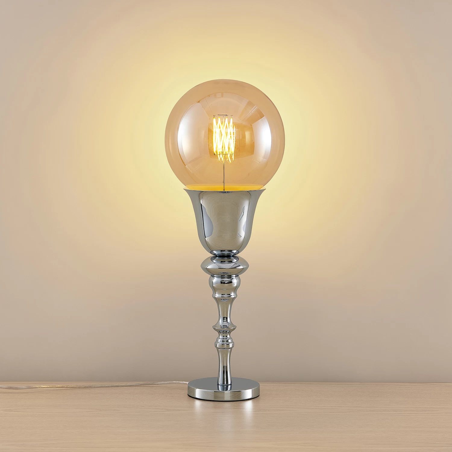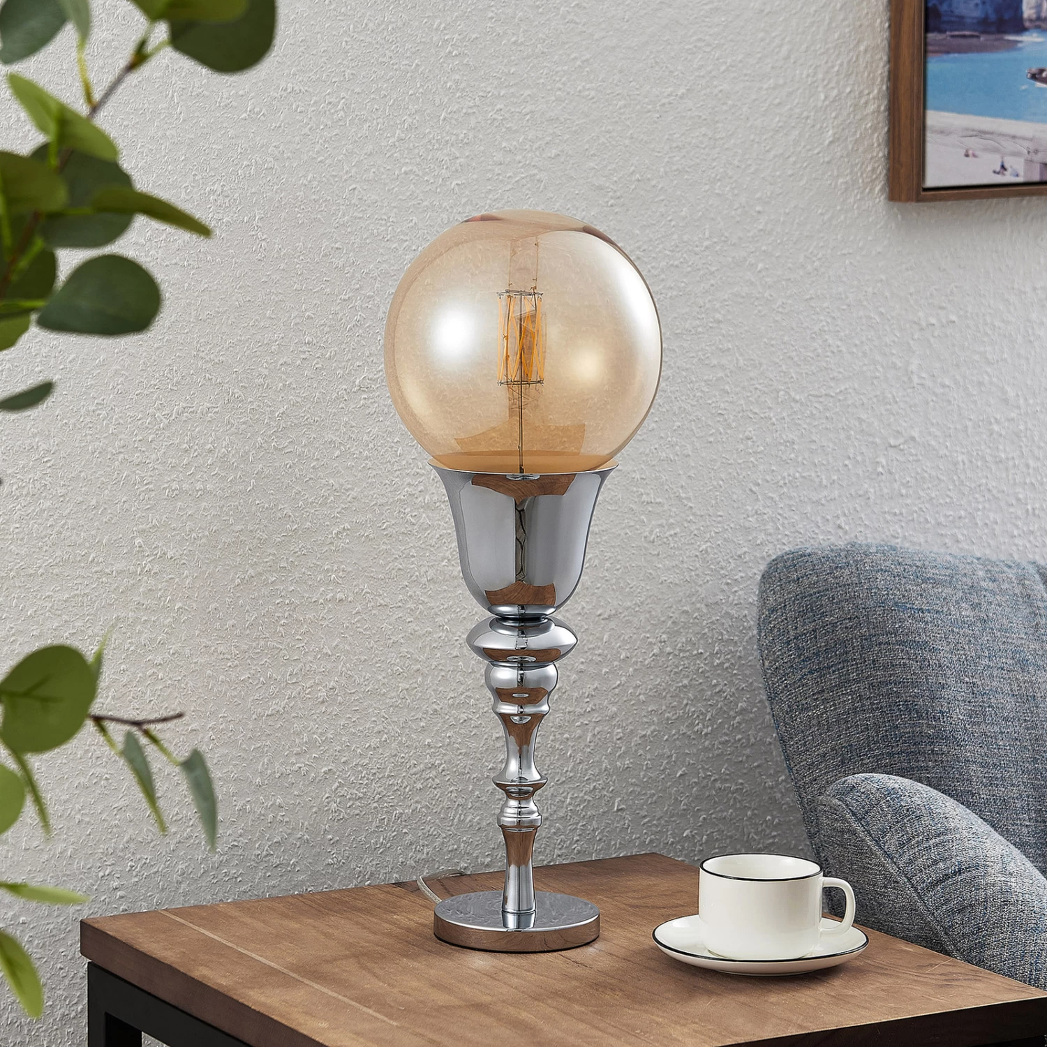 Chromglänzende Tischlampe Gesja mit eleganter Form – ideal als Zusatzbeleuchtung im Wohnzimmer