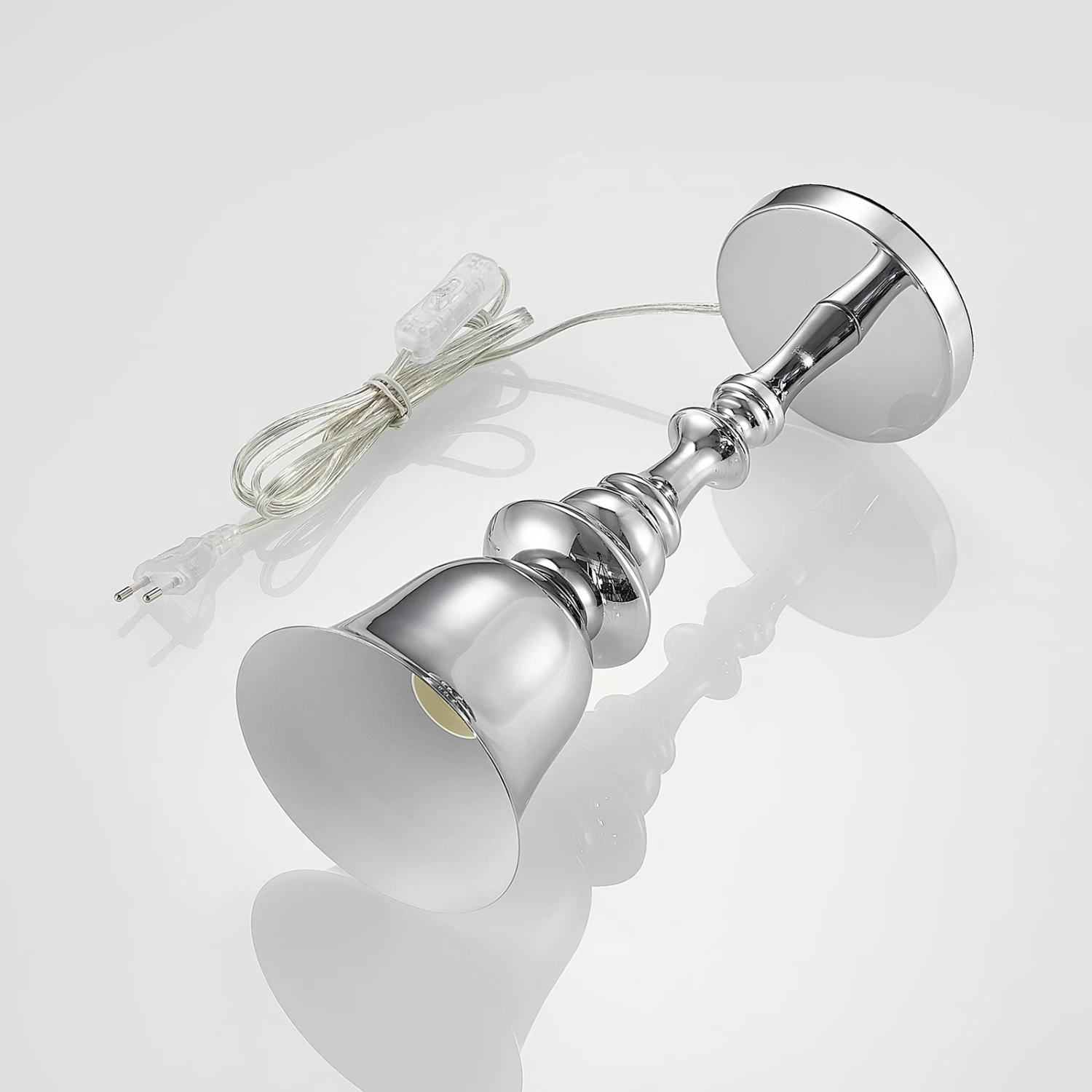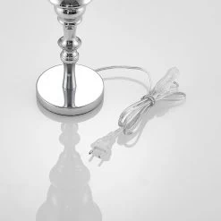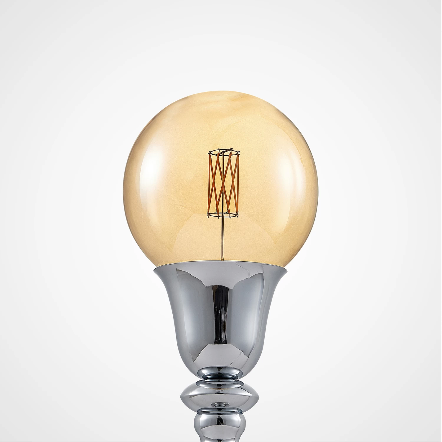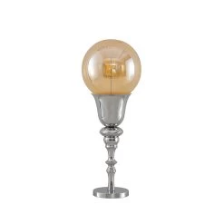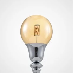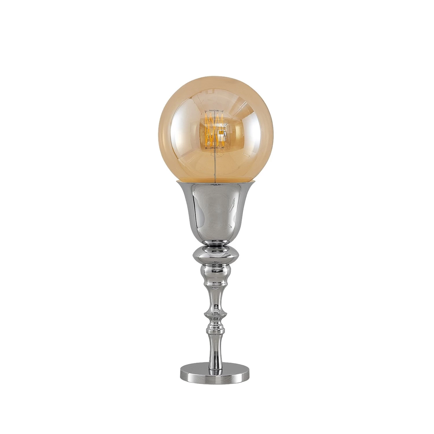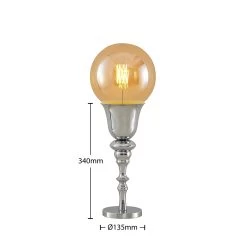 Die schirmlose Tischleuchte Gesja weiß mit einem besonders individuellen Ausdruck zu überzeugen, denn sie ist in Gestalt eines Kelches gehalten, der barocke Rundungen besitzt und eine nostalgische Ausstrahlung mit einer gewissen Modernität verbindet, da die Oberfläche in einer schön verchromten Hochglanzoptik gehalten ist. Dieses Spiel aus Gegensätzen macht die Tischlampe Gesja zu einem attraktiven Lichtspender für besondere Wohnbereiche. Um das Erscheinungsbild stilvoll zu komplettieren, sollte eine G125-Globelampe gewählt werden, die aufgrund ihrer größeren Abmaße eine beachtliche Präsenz besitzt und das Design formvollendet abrundet. Das entsprechende Leuchtmittel kann separat über das Zubehör bestellt werden.