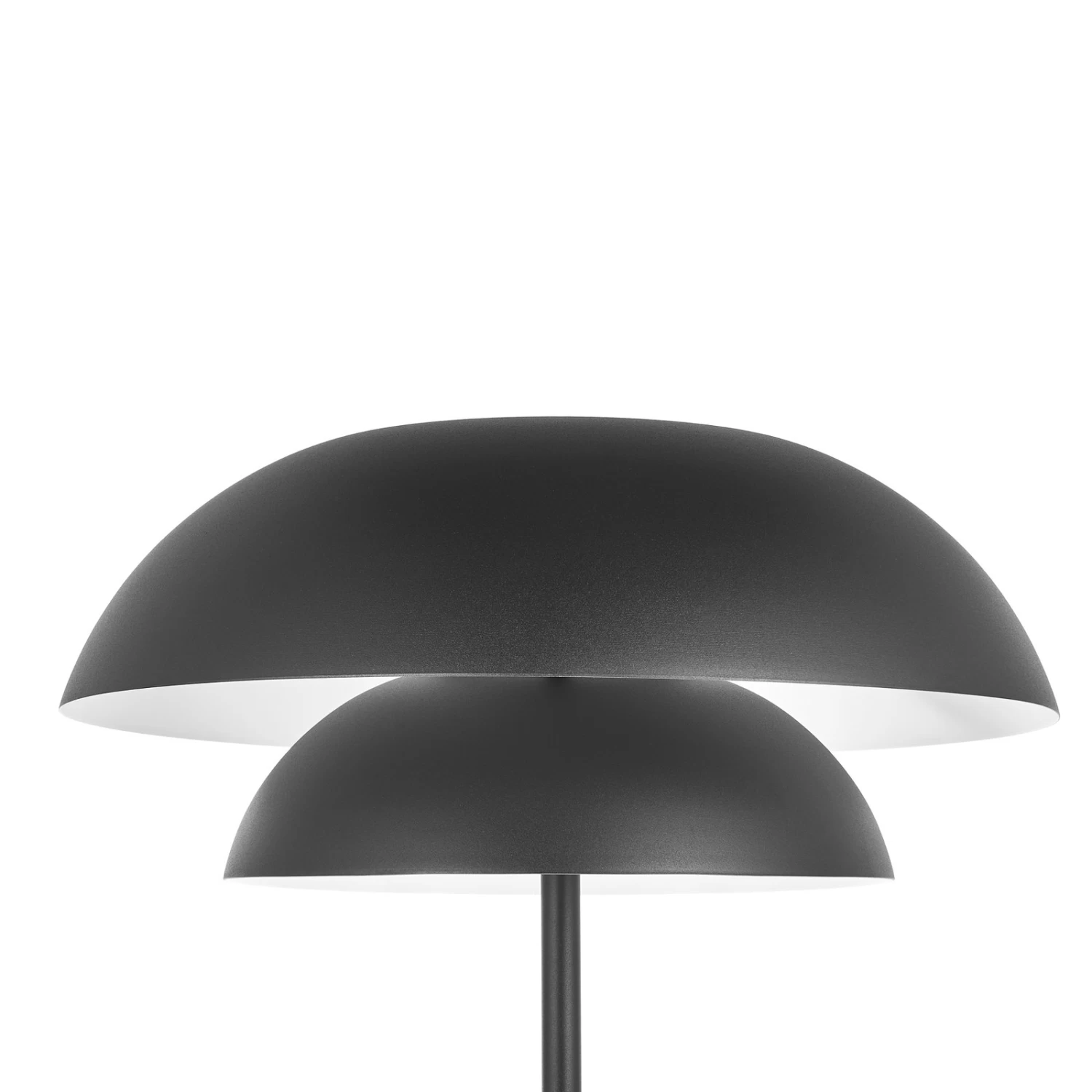 Diese Stehlampe präsentiert sich in einem zeitgemäßen Design und kommt sehr gut in modernen Umgebungen zur Geltung. Sie wurde aus Eisen hergestellt und mit einem sandschwarzen Oberflächenfinish überzogen. Im Vordergrund ihres Looks steht der doppelte Leuchtenschirm mit seiner nach unten abgerundeten Form. Das Licht wird dank des Schirms blendfrei abgestrahlt, sodass sich diese Leuchte für unterschiedliche Zwecke eignet. Sie kann sowohl im eigenen Wohnzimmer als auch im gewerblichen Bereich eine gute Figur machen und wirkt selbst im ausgeschalteten Zustand wie ein stilvolles Wohnaccessoire.