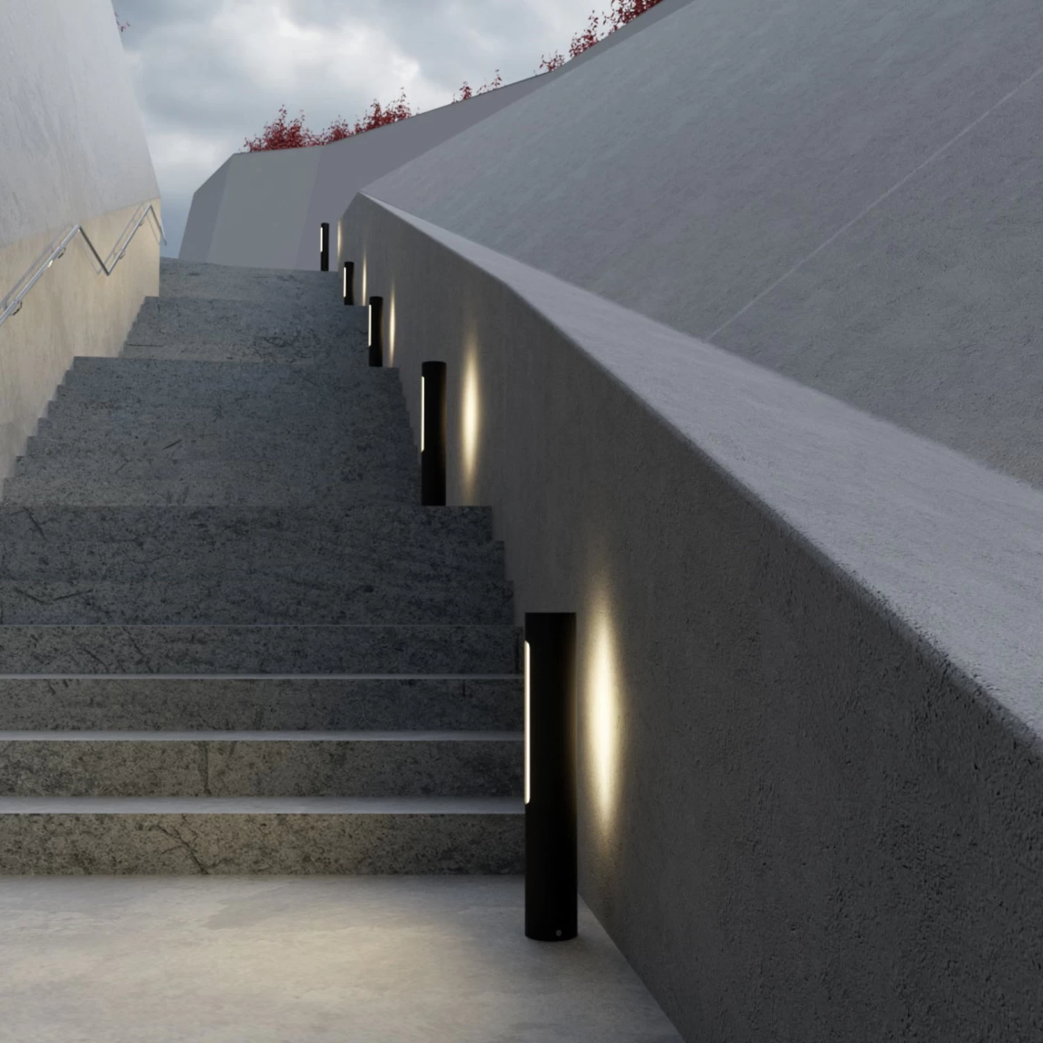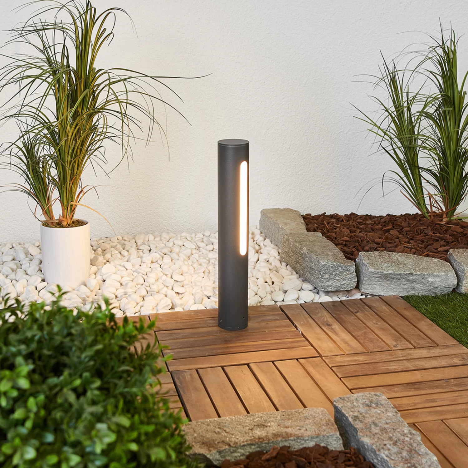 Elegante LED-Sockellampe Tomas mit schmaler Auslassung und zylindrischer Grundgestalt