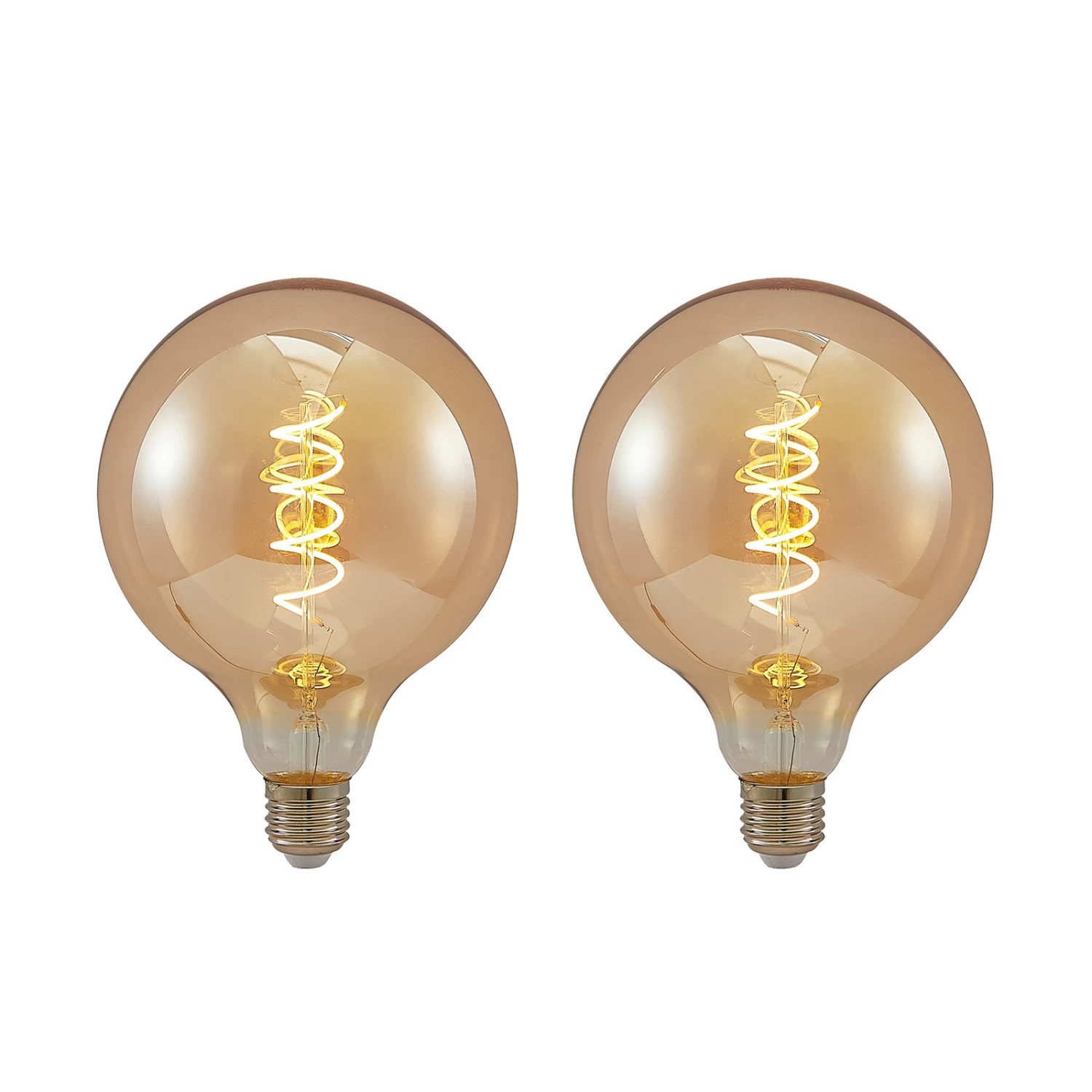 E27 G125 LED-Globelampe 4W mit amberfarbenem Glas, dimmbar, CRI >; 90, in praktishcem 2er-Set