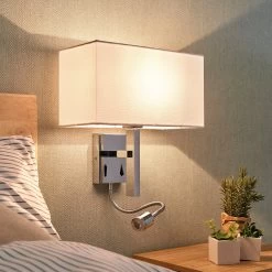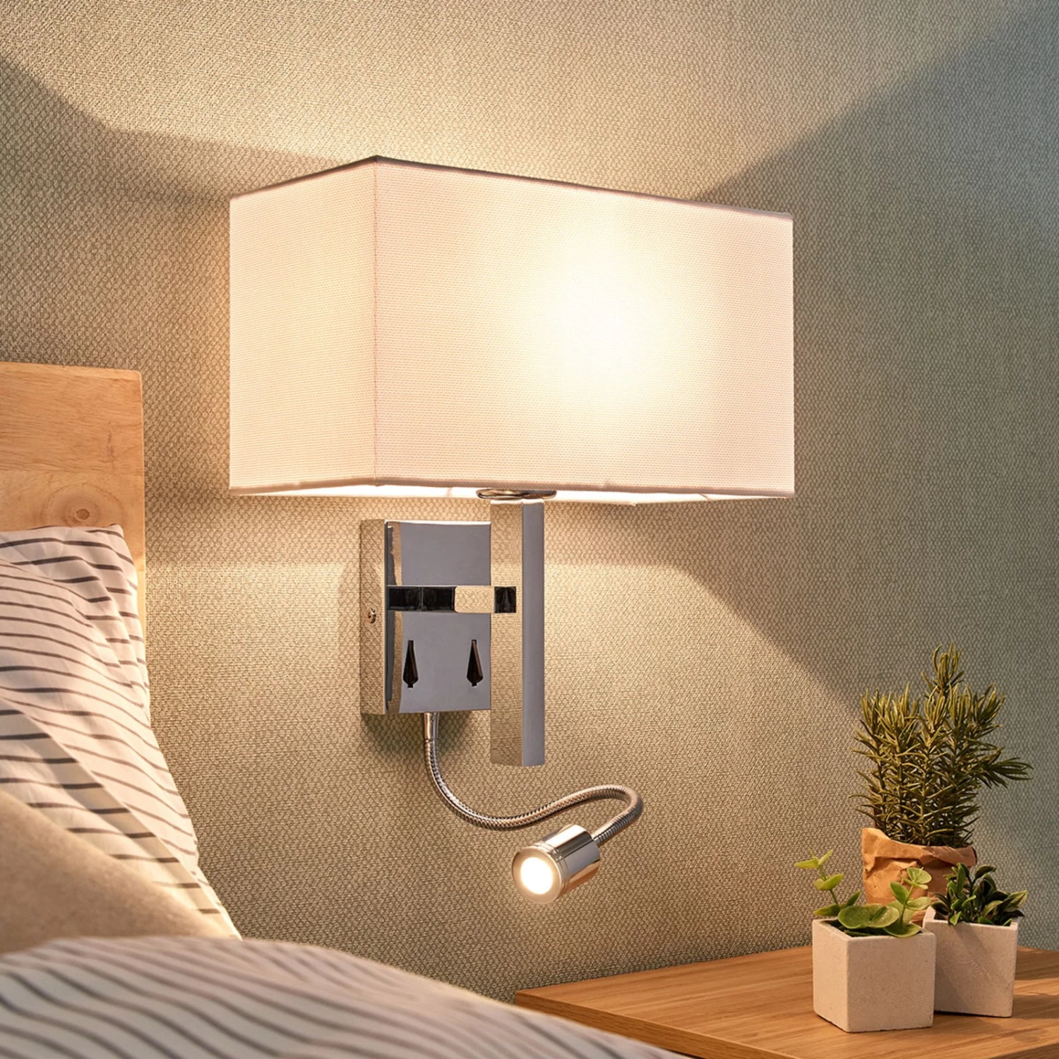 Kantige Wandleuchte Pelto mit Stoffschirm und flexiblem LED-Lesearm