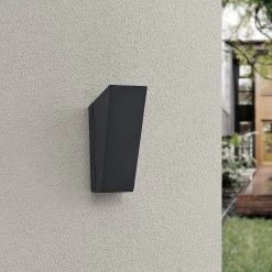 Das Außenlicht Maniela ist eine moderne Außenwandleuchte, die mit energieeffizienten LEDs bestückt ist. Ihr besondere Form macht sie zu einer Leuchte, die, je nach Montageart, nach oben oder unten hin strahlen kann. Ob als Downlight, zum Beispiel über einem Klingelschild oder einer Hausnummer, genutzt oder nach oben strahlend als dekoratives Uplight an der Häuserfassade eingesetzt, die LED-Außenwandleuchte Maniela überzeugt in jedem Fall. Ihr warmweißes Licht der integrierten LEDs strahlt dabei hell und sorgt für eine optimale Beleuchtung, egal für welchen Einsatz.
