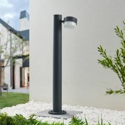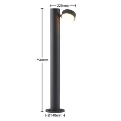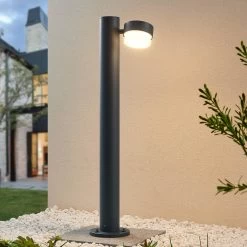 Die Pollerleuchte Marvella ist eine tolle Beleuchtung für einen Gehweg oder eine Einfahrt. Sie ist einflammig und kann mit entsprechenden Leuchtmitteln bestückt werden. Ihr Körper besteht aus Aluminium und ergibt sich aus einem schlanken Standbein und einem Leuchtenschirm, der rund, flach und schwenkbar ist. Die dunkelgraue Farbgebung rundet das Design wohlwollend ab und verleiht der Leuchte einen unauffälligen Charakter. Für ein stimmiges Gesamtbild kann Marvella mit weiteren Leuchten ihrer Serie kombiniert werden. Durch die Schutzart IP54 besitzt die Wegeleuchte einen robusten Charakter, denn sie ist gegen Staub und Spritzwasser geschützt.