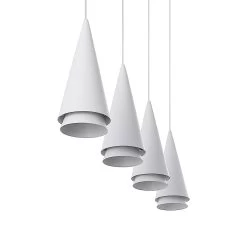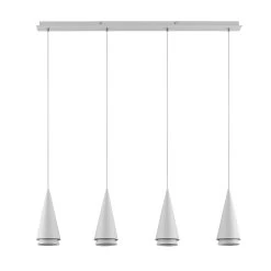 Vierflammige Balkenpendellampe Naoh mit Kegelschirmen in Weiß – ideal fürs Esszimmer