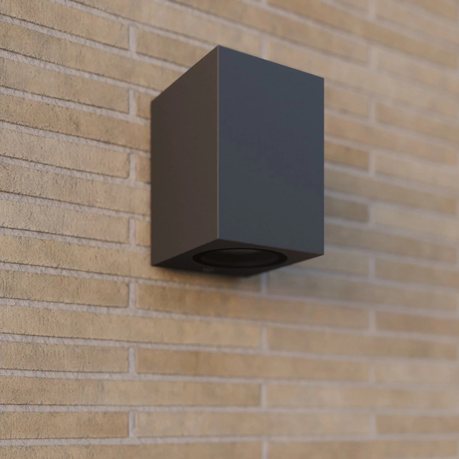 Xava hat einen eckigen Leuchtenkörper, der einem Würfel ähnlich sieht und durch die klare Formensprache ebenso modern wie zeitlos wirkt. Die Oberfläche des Gestells aus Aluminiumdruckguss ist mit einem grafitgrauen Finish versehen worden, das in der Tradition einer kühlen Elegant steht. Der Lichtaustritt erfolgt bei dieser Außenwandlampe nach unten. Eine schöne Ergänzung für viele Umgebungen.