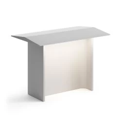 Die außergewöhnliche Sockelleuchte Fienile wurde von dem norwegischen Designer Daniel Rybakken entworfen. Traditionelle Heuverschläge aus dessen Heimatland dienten als Vorbild für das Konzept. Deren typisches Schema mit seitlich leicht geneigtem Flachdach, zwei begrenzenden Wänden an den Längsseiten und zentraler Trennwand beschreibt bestens den Aufbau dieser Sockelleuchte. Der Korpus wird aus einem einzigen Aluminiumblock gearbeitet. Hinzu kommt ein Diffusor aus Polycarbonat, der die nach unten strahlenden LEDs überdeckt. Fienile sorgt für eine sanfte, indirekte Beleuchtung zur Vorder- und Rückseite. Im Lieferumfang ist ein Vorschaltgerät enthalten, das extern DALI-dimmbar ist.
