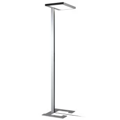 Mit der LED-Stehleuchte Vitawork, die sowohl direkte als auch indirekte Beleuchtung spendet und das Licht symmetrisch abstrahlt, lassen sich die verschiedensten Arbeitsplätze auf professionelle Art und Weise beleuchten. Die Stehleuchte in schönem Design wurde mit einer silbernen Oberfläche gestaltet, lediglich das Bedienpanel und die Seitenkappen in Schwarz bilden einen schicken Kontrast dazu. Der sehr flache Fuß aus Stahl lässt sich unter jeden Schreibtisch schieben und sorgt für Standfestigkeit.