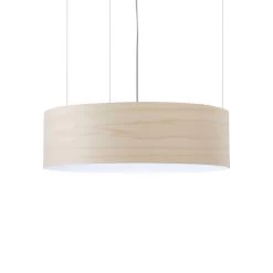 Gea Slim besitzt einen runden, zylindrischen Schirm, dessen Außenseite mit einem natürlichen Holzfurnier ausgestattet ist. Dank der patentieren Timberlite®-Technik des Herstellers LZF-Lamps wird ein besonders dünnes Furnier erzielt, das zugleich sehr elastisch und bruchbeständig ist. Die Maserung kommt im Betrieb besonders zum Vorschein und erfüllt den Raum mit einem angenehmen, natürliche Touch. Die warmweiß strahlenden LEDs im Innern emittieren ihr Licht in erster Linie nach oben und unten durch opale Abdeckungen.