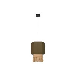 Pendelleuchte Marrakech mit zweilagigem Schirm aus Naturfaser und gefärbtem Leinentextil