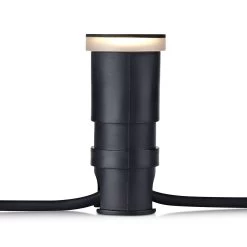 Dieses kleine LED-Decklight, das als Bodenleuchte in Treppen oder Terrassen eingebaut werden kann, ist aus Aluminium und Kunststoff gefertigt und in zurückhaltendem Schwarz gestaltet. Das warmweiße Licht der LEDs wird seitlich abgestrahlt, wodurch eine stimmungsvolle indirekte Beleuchtung entsteht, die bei Dunkelheit Laufwege zur Orientierung erhellen kann. Kombiniert man mehrere dieser Bodeneinbauleuchten, erhält man ein stimmiges Lichtbild mit dezenter Lichtwirkung, die sich mühelos installieren lässt und mit zahlreichen Komponenten des Garden 24V-Systems verbunden werden kann.