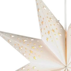 Dieser dekorative Stern aus Papier erweist sich bereits ohne Beleuchtung als Fensterschmuck, der niemandem verborgen bleibt. Wird das Licht eingeschaltet, kommt das sternförmige Durchbruchmuster besonders schön zur Geltung und verbreitet zauberhaftes Flair. Solvalla hat einen Durchmesser von 45 cm und sieht im Raum aufgehängt ebenso schön aus wie vor einem Fenster. Mit weißem Kabel ausgestattet.