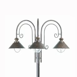 Diese Mastleuchte verzaubert jeden Außenbereich mit Stil und Eleganz. Die gebogene Form mit der inneren Verzierung dominiert das Design dieser Mastleuchte. Das große Klarglas mit Querverstrebungen vollendet die Formschönheit. Die Leuchte gehört zu einer Serie von Leuchten mit anmutigem Stil, die in kunsthandwerklicher Art und Weise hergestellt werden und durch ihr dekoratives Design und ihr angenehmes Wohlfühllicht überzeugen.