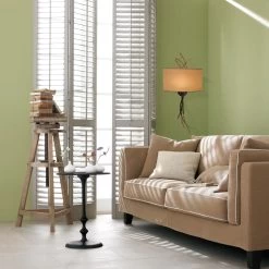 Ein echter Blickfang an der Zimmerwand ist die Wandleuchte Living Oval. Die Halterung besteht aus mehreren, leicht gebogenen Streben, die unterschiedlich lang sind und sich wie zusammen gebundene Ruten aus Metall durch die Leuchte ziehen. Sie wurden in Schwarz-Braun lackiert und anschließend Gold patiniert, sodass ein dezenter Schimmer entsteht. Dazu passt der cremefarbene, ovale Schirm. Dieser besteht aus transparenter Folie, die im Strichlackverfahren lackiert wurde. Optisch passt Living Oval sowohl in den klassischen, antiken oder rustikalen Wohnraum. Die Leuchte wurde per Hand in Europa gefertigt und verspricht höchste Qualität und Individualität. Die harmonischen Farben vereinigen sich zu einem attraktiven Kunstwerk, das wunderbar warmes und sanftes Licht verbreitet.