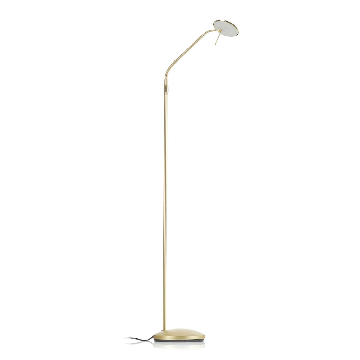 Mit ihrer betörenden Messing-Optik sorgt die LED-Stehleuchte Zenith für einen Hauch von glamourösem Luxus und präsentiert sich überaus energieeffizient zugleich. Wer auf ein atmosphärisches Licht, eine edle Stehlampe sowie auf einen energiesparenden Betrieb viel Wert liegt, ist mit der Stehleuchte Zenith sehr gut beraten. Neben der sparsamen LED-Technologie zählt die Dimmbarkeit der Leuchte zu deren Besonderheiten, denn dimmt man das Licht herab, so verändert sich auch die Lichtfarbe von Warmweiß bis Universalweiß. Somit kann die Leuchte eine noch stimmungsvollere Lichtwirkung erzielen. Die leichte Krümmung im oberen Abschnitt der Leuchte sorgt darüber hinaus dafür, dass sich der Lampen-Klassiker Zenith zum Beispiel wunderbar als Leselicht neben einem komfortablen Sessel eignet. Da das Messing der Leuchte einen zeitlos schönen Look beschert, passt die Stehlampe sowohl zu einem modernen als auch zu einem Vintage-Wohndesign.
