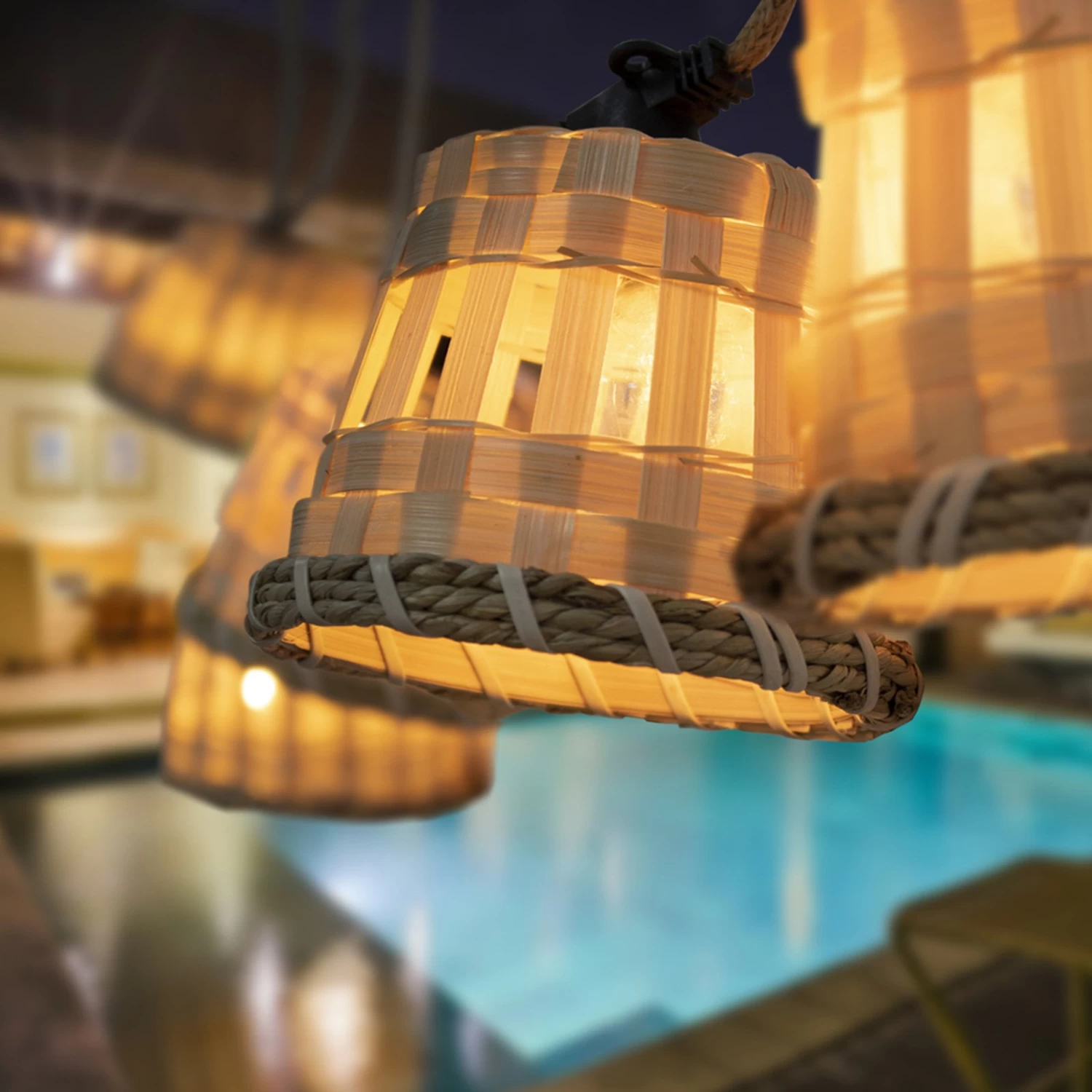 LED-Lichterkette Aurora mit Zuleitung und Schirmen aus Naturfasern